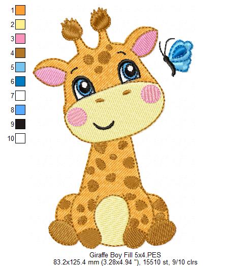 Giraffe Boy and Girl and Butterfly - Fill Stitch - Set of 2 designs
