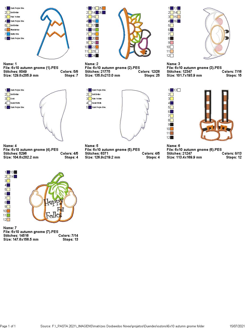 Gnome Happy Fall Folks Ornament - ITH Project - Machine Embroidery Design
