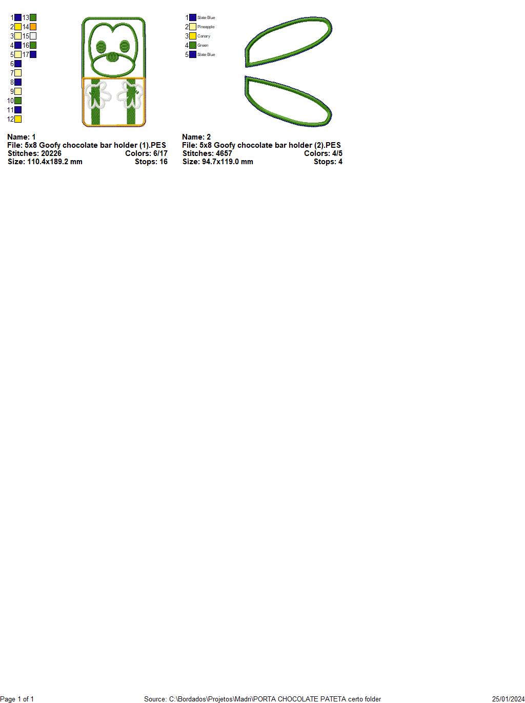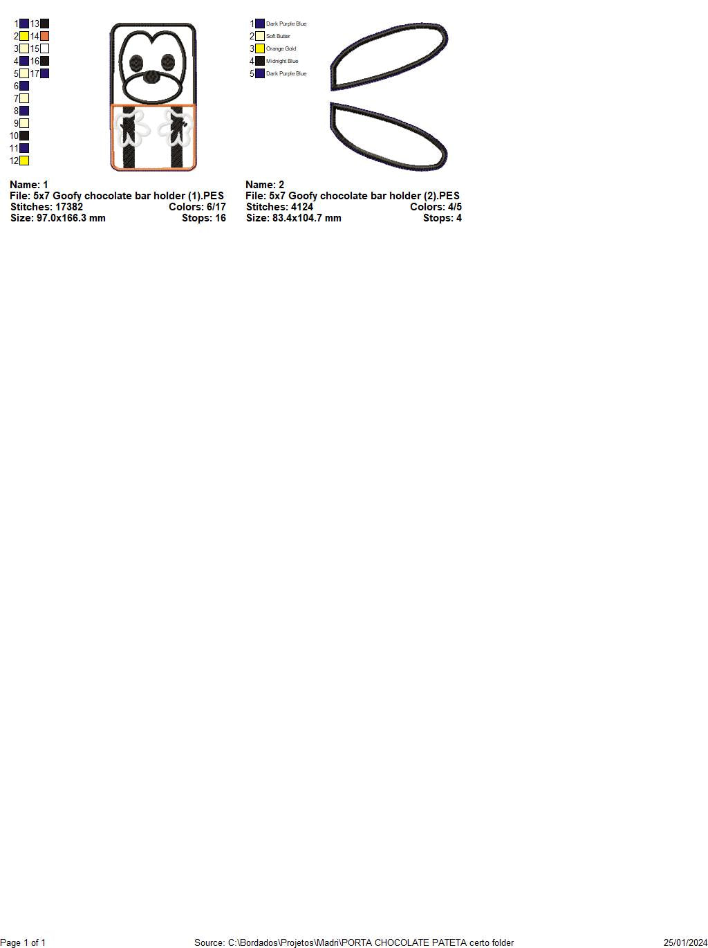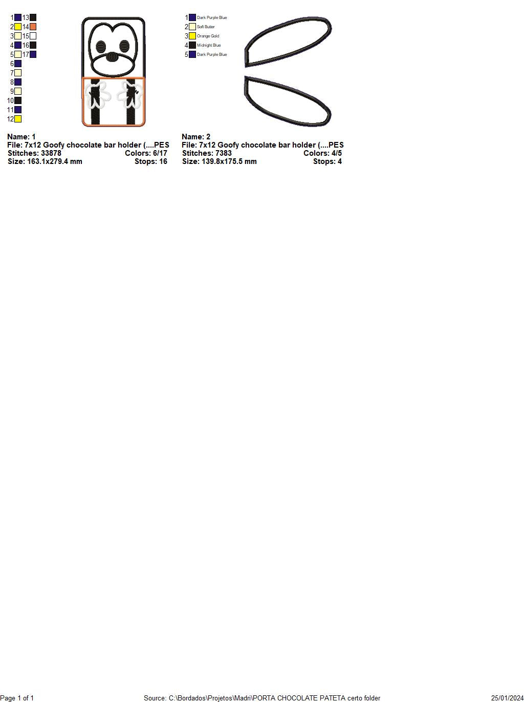 Goofy Chocolate Bar Holder - ITH Project - Machine Embroidery Design