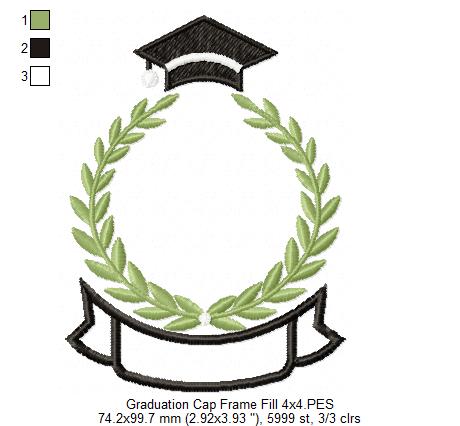 Graduation Frame and Cap - Applique & Fill Stitch - Set of 2 designs