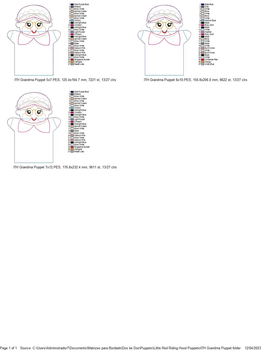 Grandma Puppet - ITH Project - Machine Embroidery Design