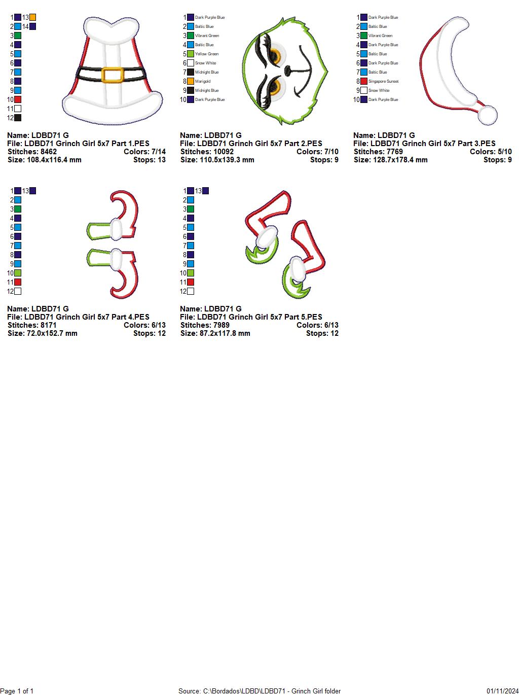 Grinch Girl Santa - ITH Project - Machine Embroidery Design