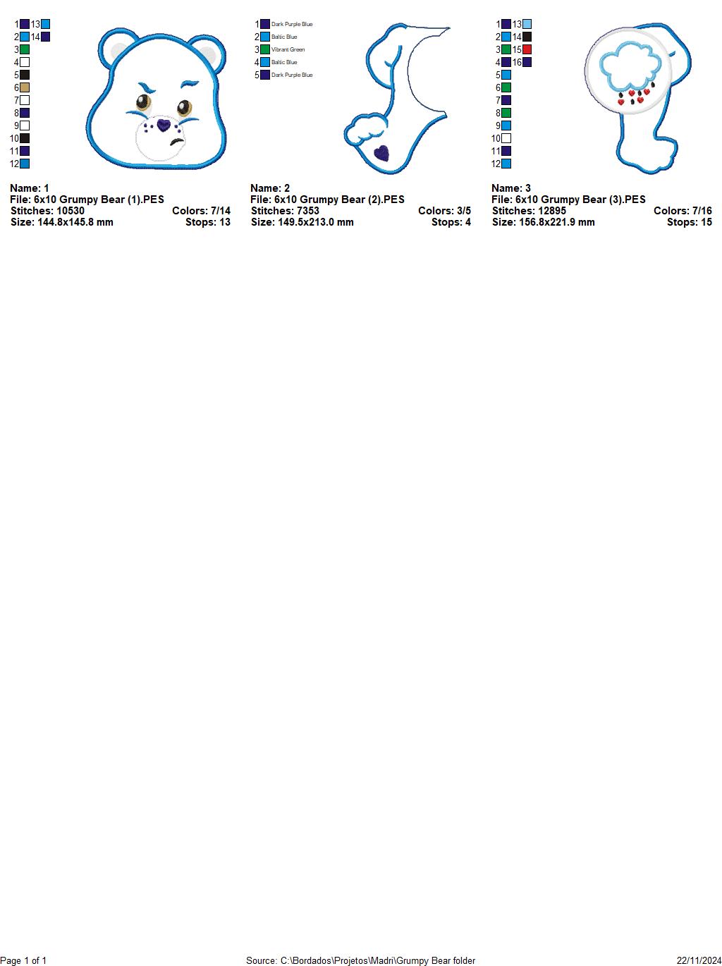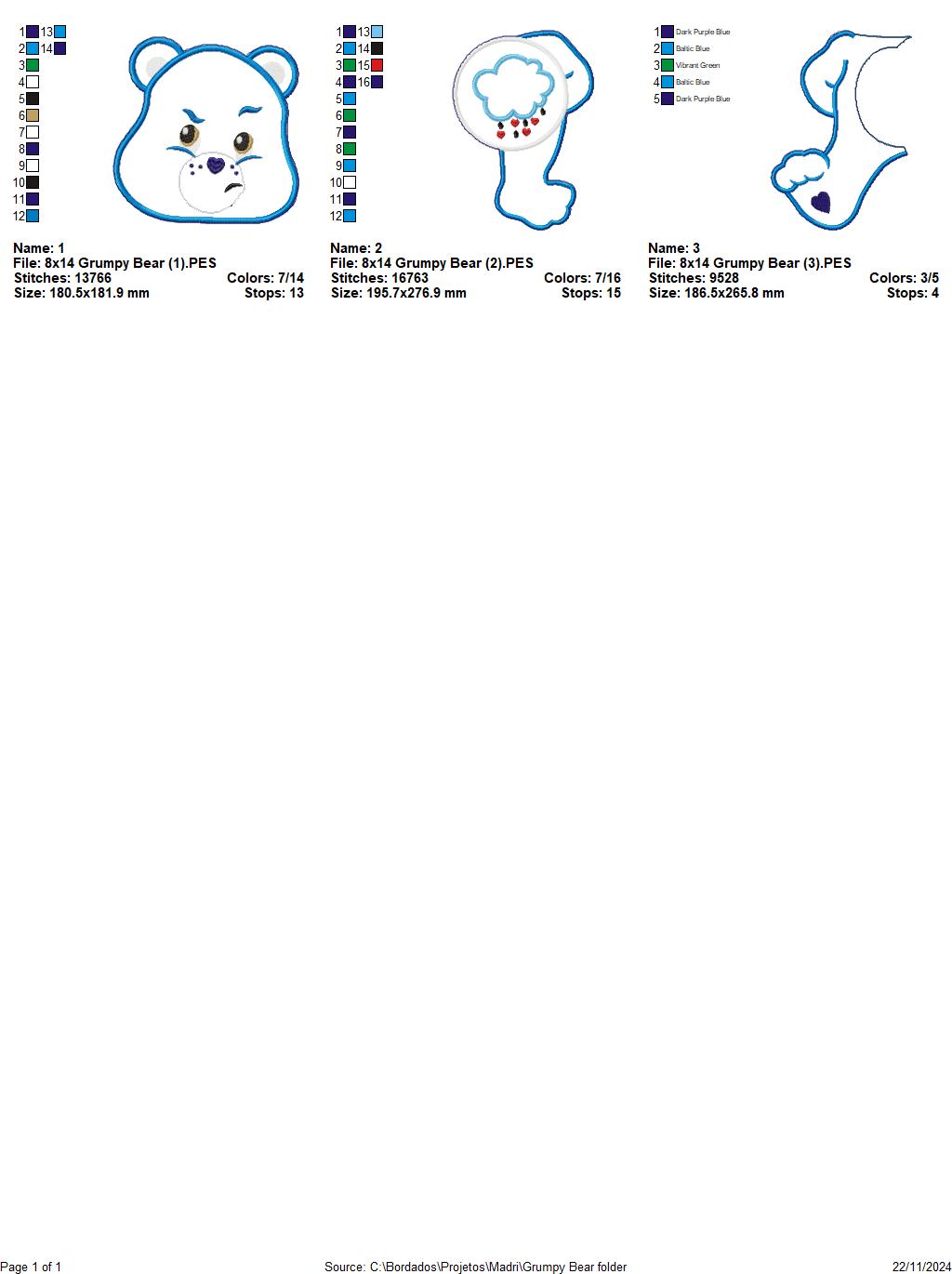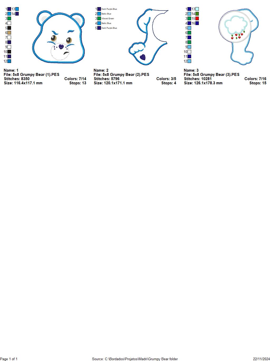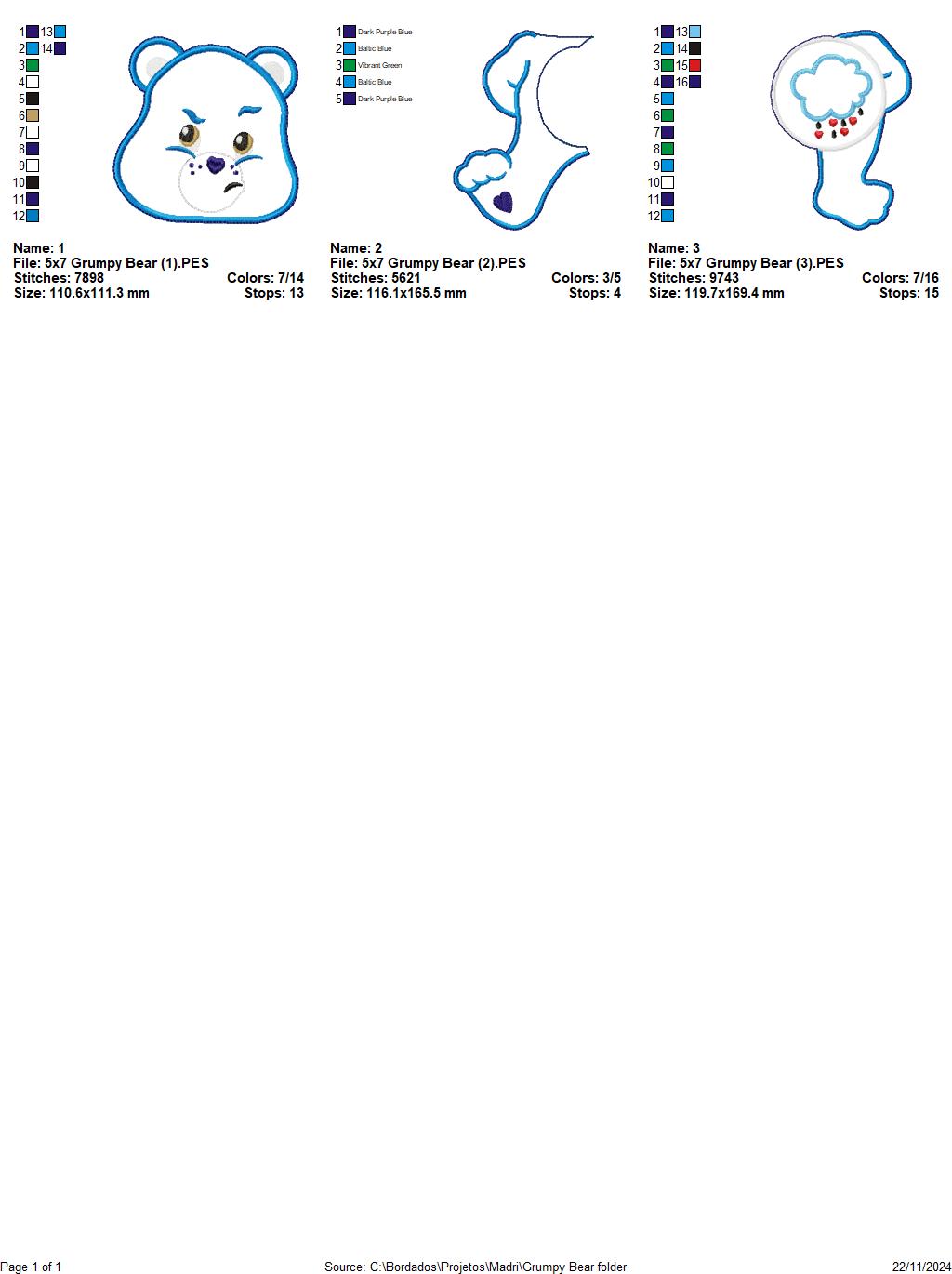 Grumpy Bear Care Bears - ITH Project - Machine Embroidery Design