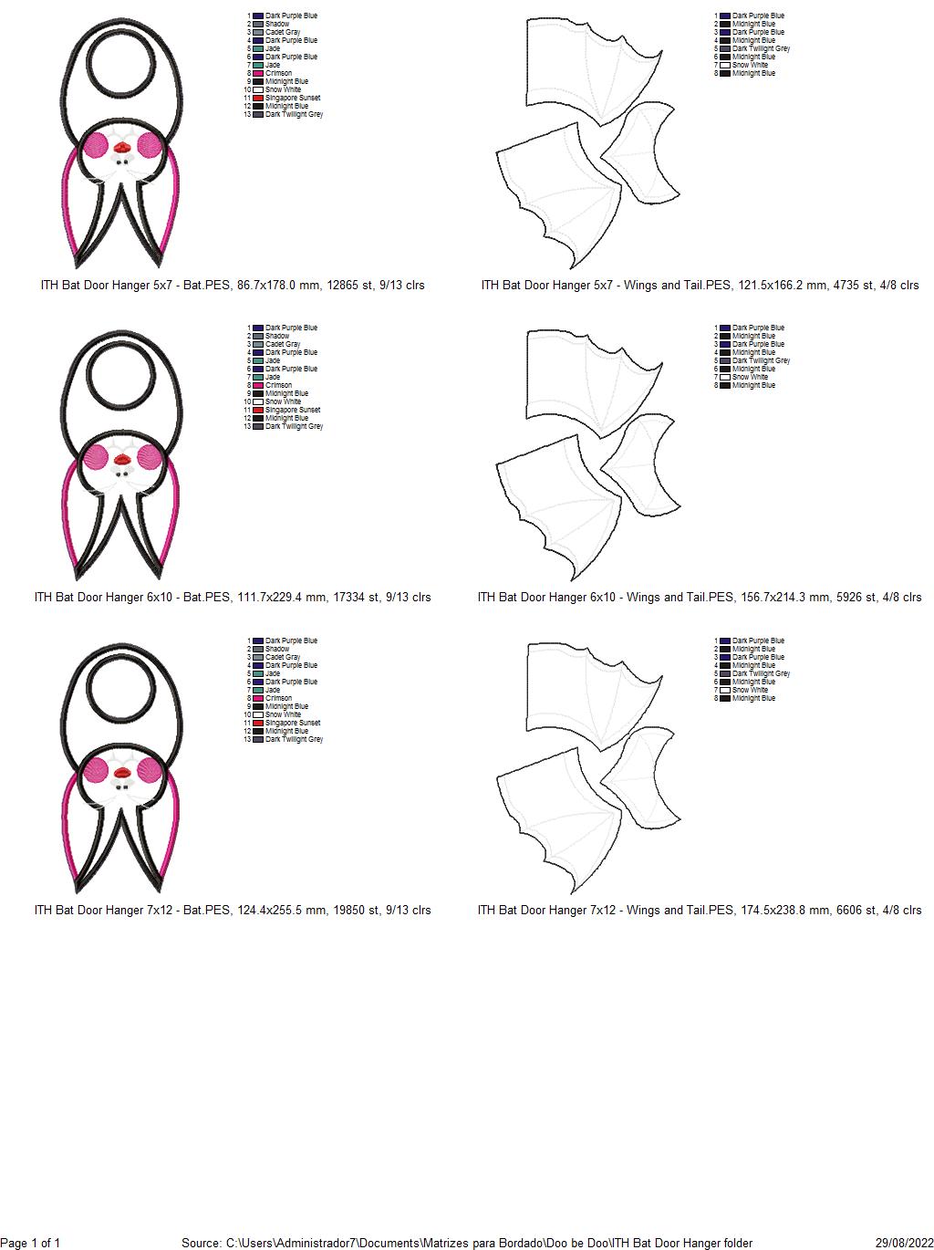 Get ready for Halloween with our spooky bat door hanger embroidery design! This instant download makes it easy to add a touch of fright to your front door. This ITH project is the perfect way to greet your trick-or-treaters with a unique decoration. Order now and add a hauntingly fun element to your home decor!