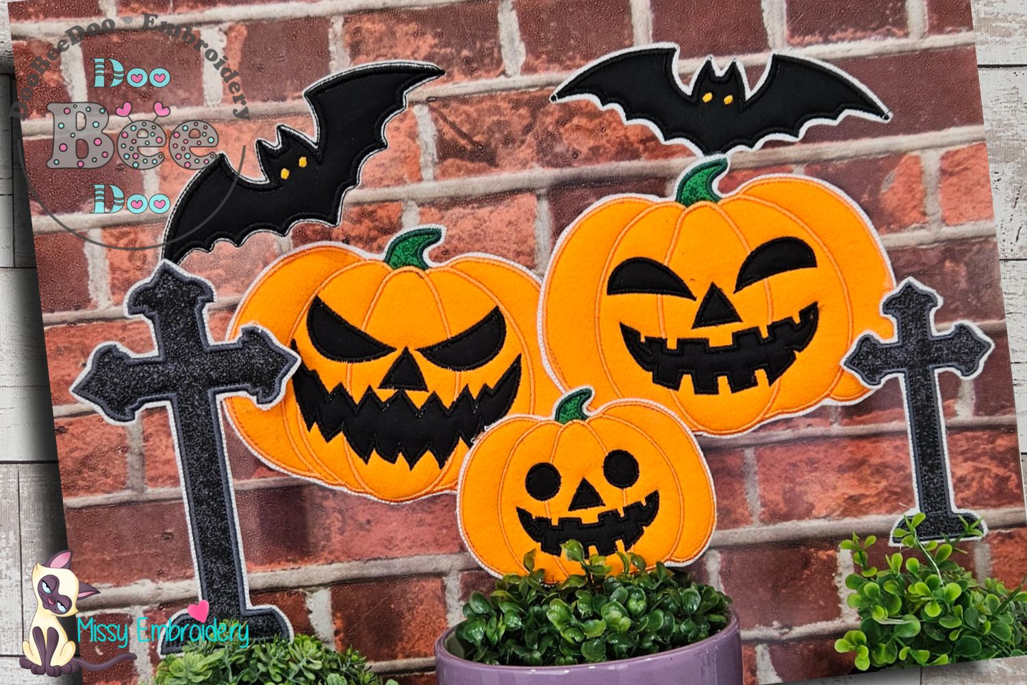 Halloween Pumkins, Bat and Cross Set - ITH Project - Machine Embroidery Design