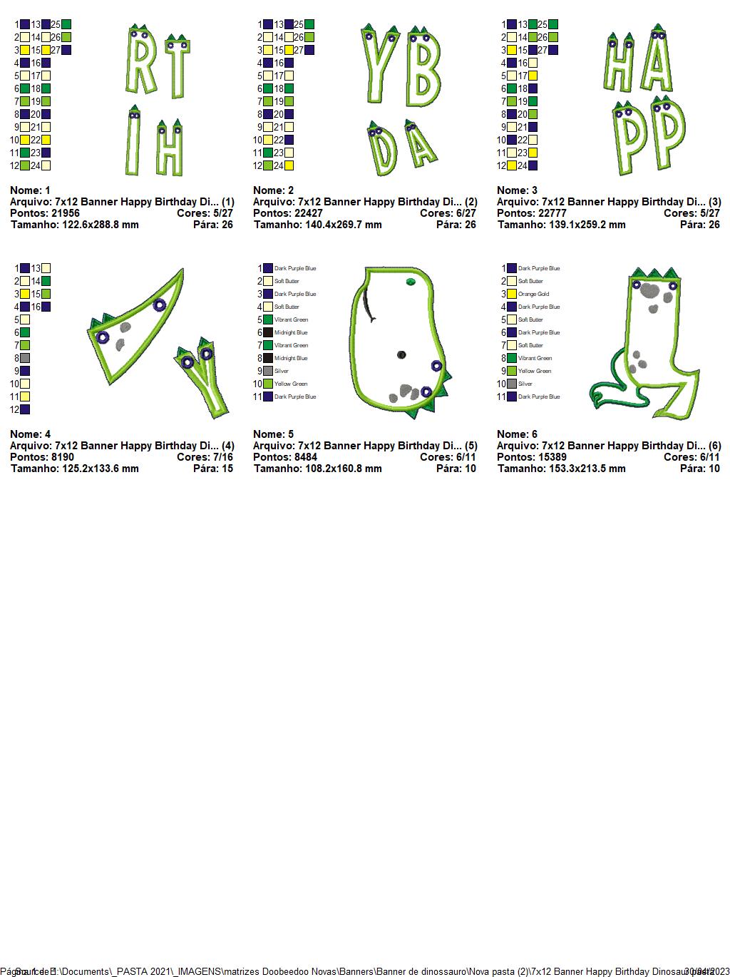 Happy Birthday Dinosaur Banner - ITH Project - Machine Embroidery Design