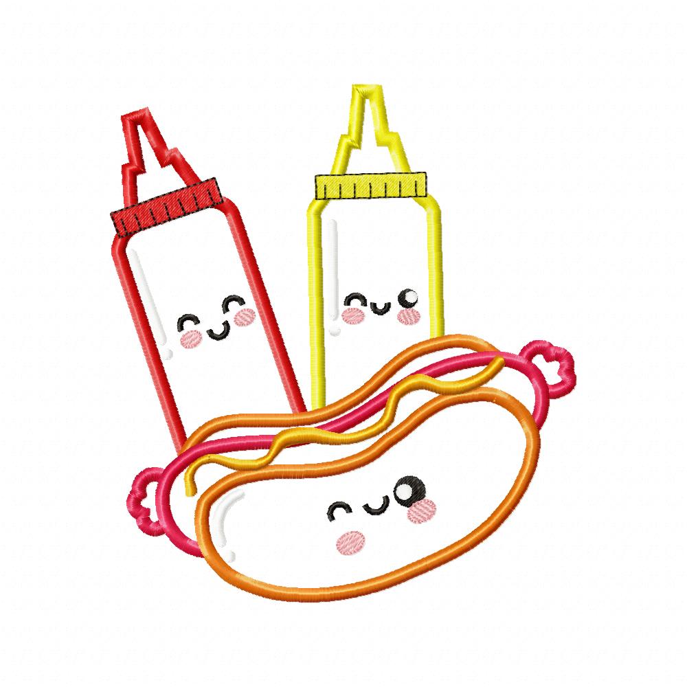 Happy Hot Dog, Ketchup and Mustard - Applique - Machine Embroidery Design