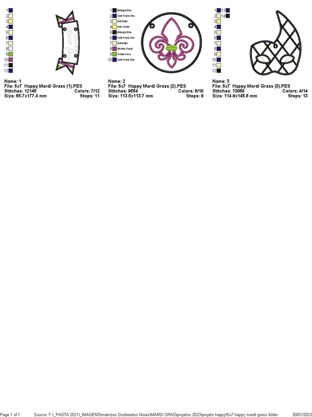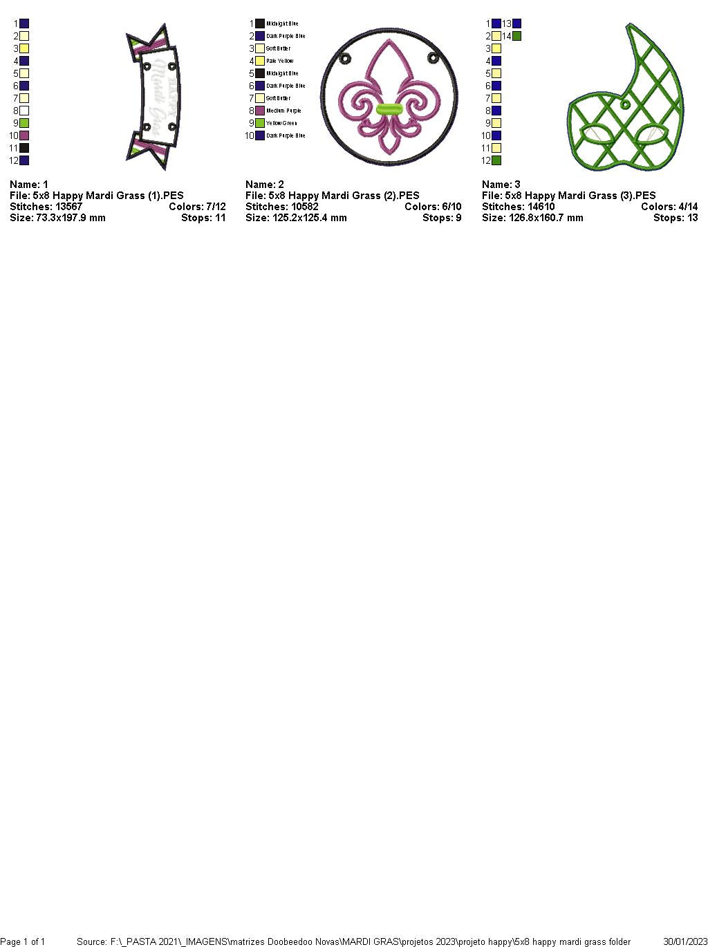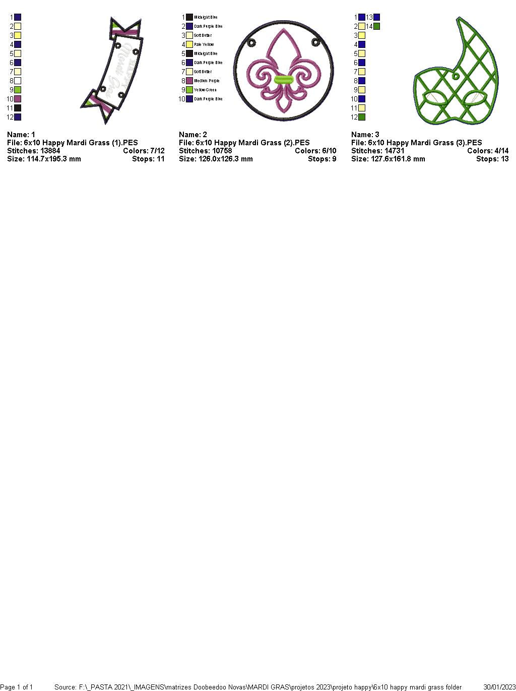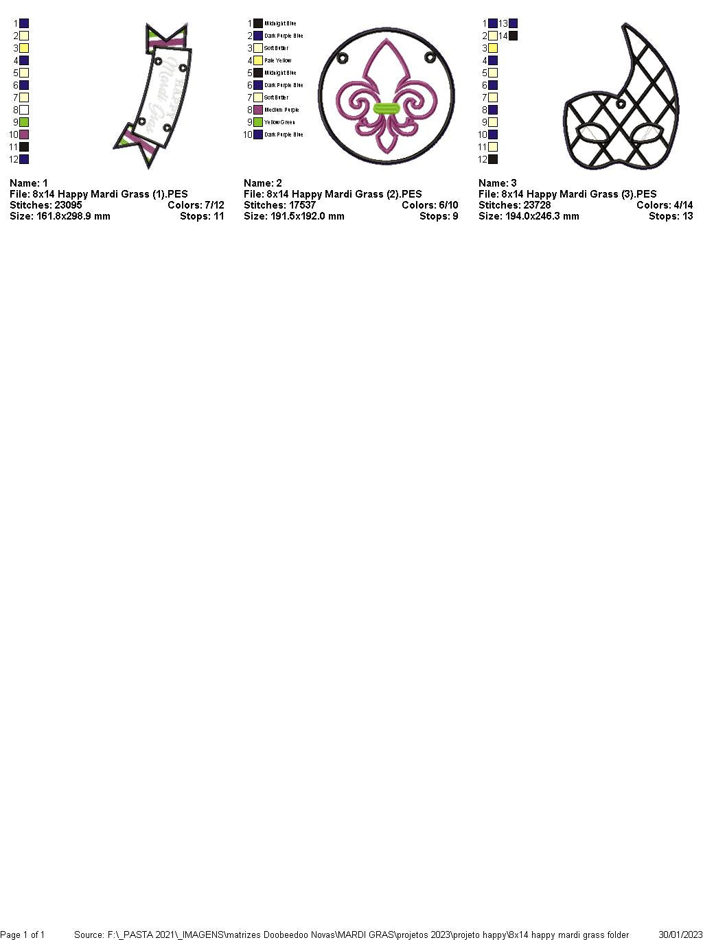 Happy Mardi Gras Door Ornament - ITH Project - Machine Embroidery Design