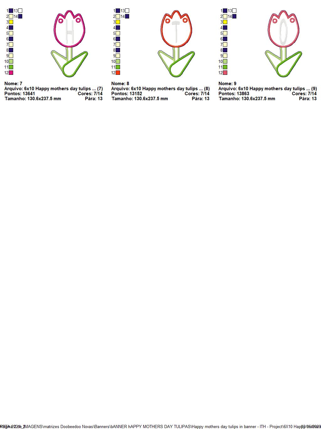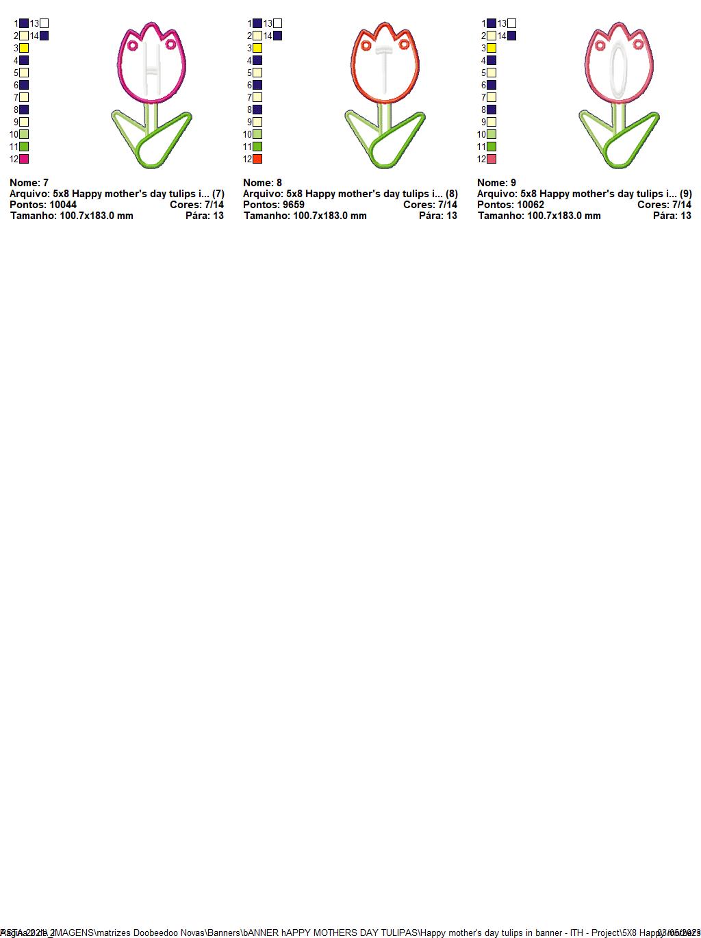 Happy mothers day tulips in banner - ITH Project - Machine Embroidery Design