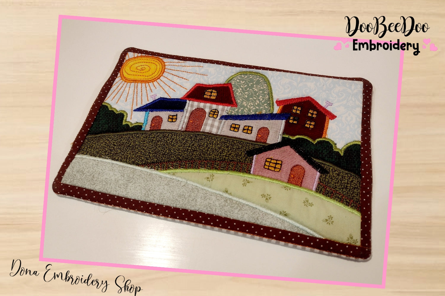 Happy Village Mug Rug - ITH Project - Machine Embroidery Design