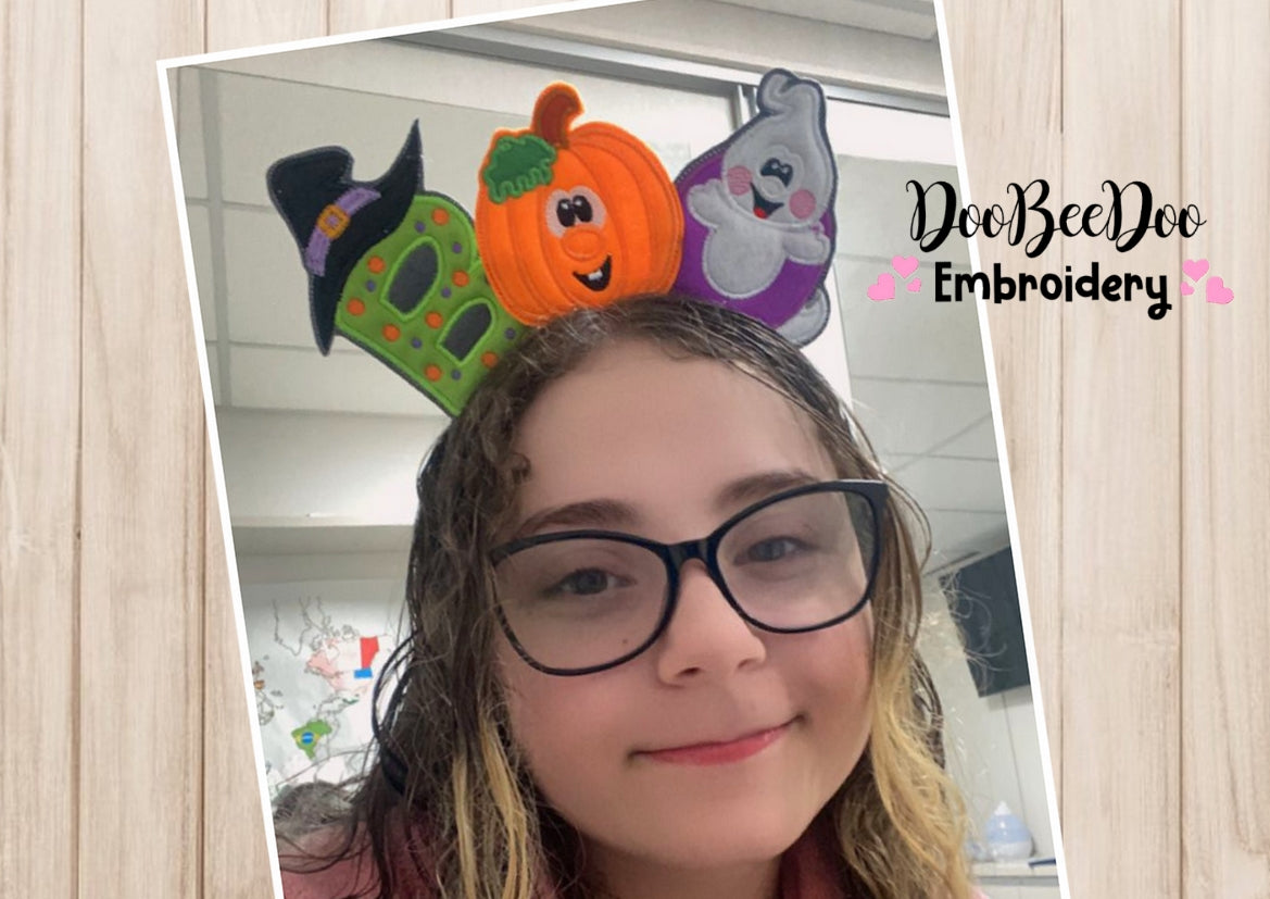 Embroider with ease using our Boo Headband - ITH Project! This machine embroidery design allows for instant download, taking the hassle out of crafting. Perfect for adding a touch of spooky fun to any outfit.
