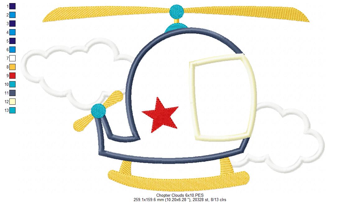 Take your embroidery to new heights with our Helicopter Applique design! Available in 6 sizes, this playful and unique machine embroidery design is great for adding a touch of whimsy to any project. Instantly download and start stitching today - no flying required!