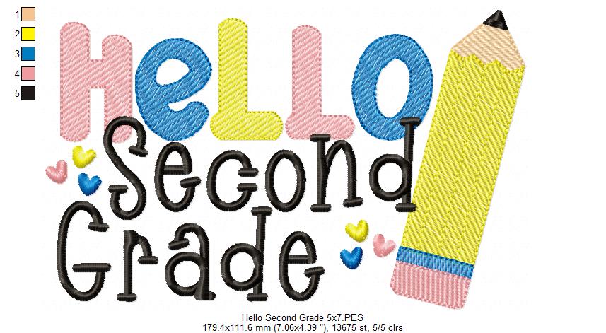 Hello Second Grade Pencil - Rippled Stitch