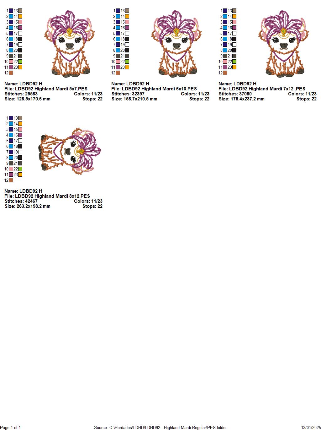 Highland Cow Mardi Gras - Applique - Machine Embroidery Design