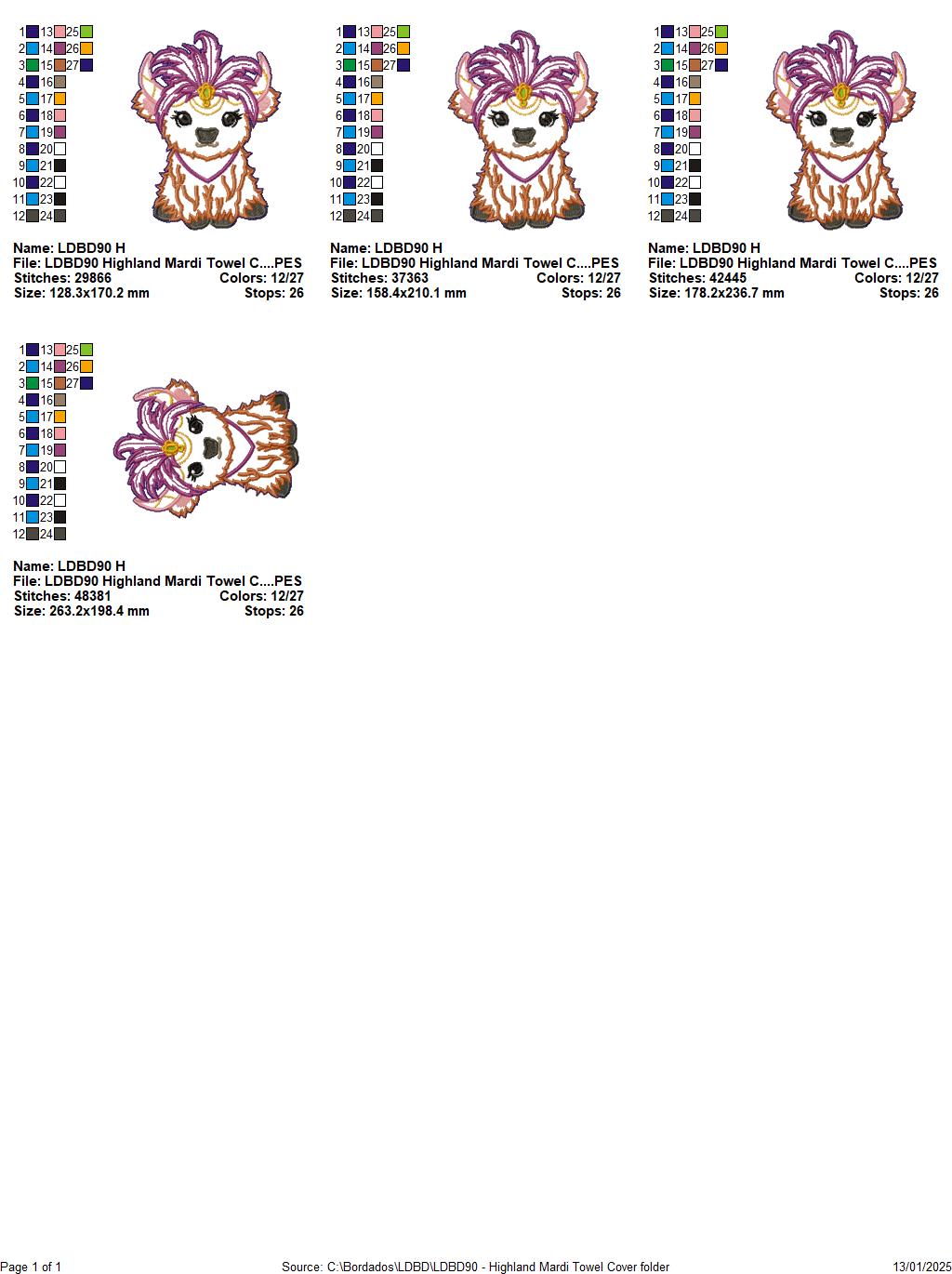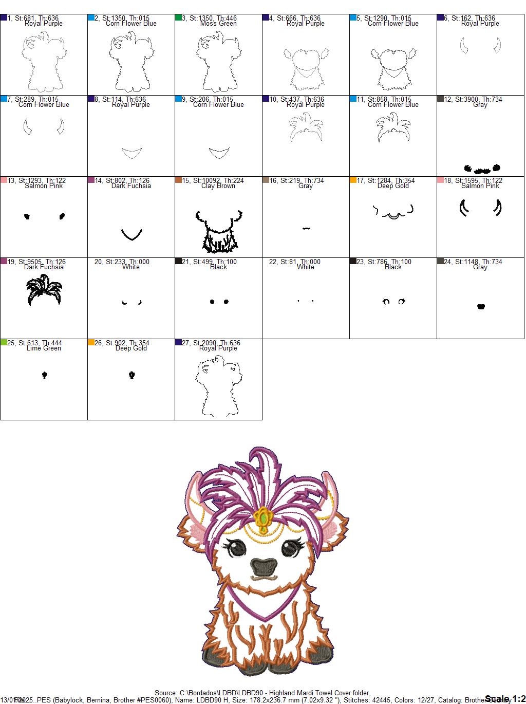 Highland Cow Mardi Gras Paper Towel Holder Cover - ITH Project - Machine Embroidery Design
