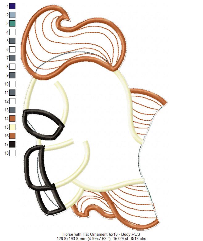 Horse with Hat Ornament - ITH Project - Machine Embroidery Design