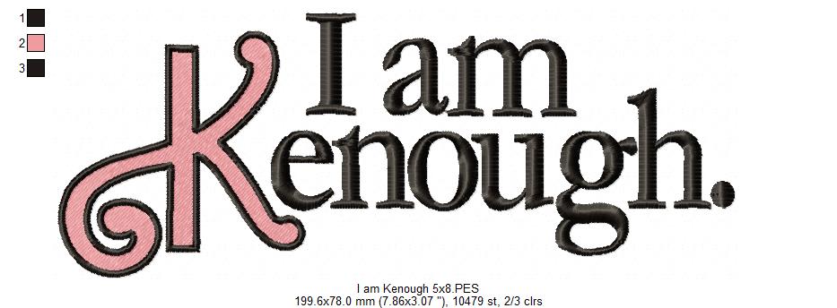 I am Kenough - Barbie Movie - Fill Stitch Embroidery