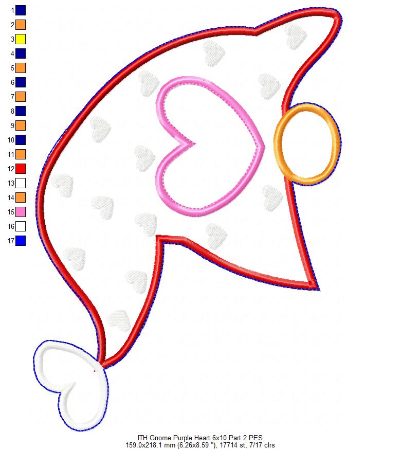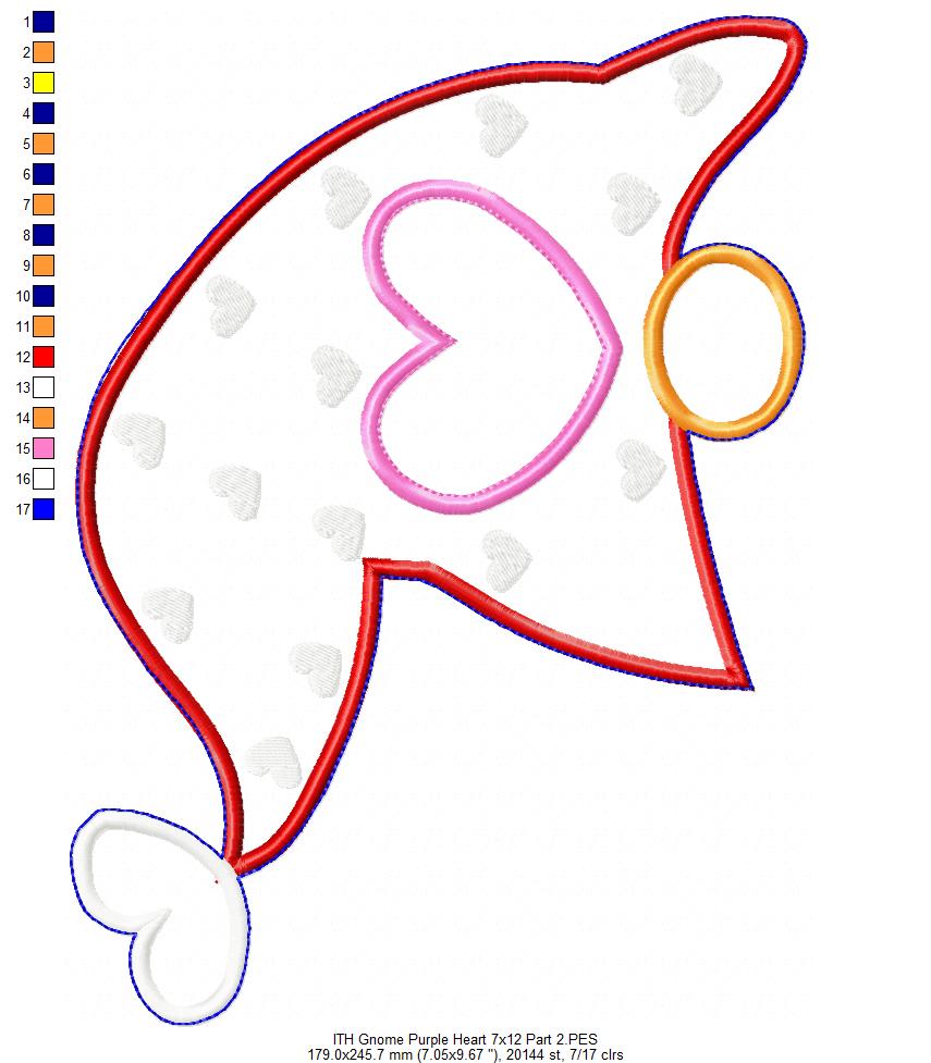 Gnome Purple Heart Ornament - ITH Project - Machine Embroidery Design