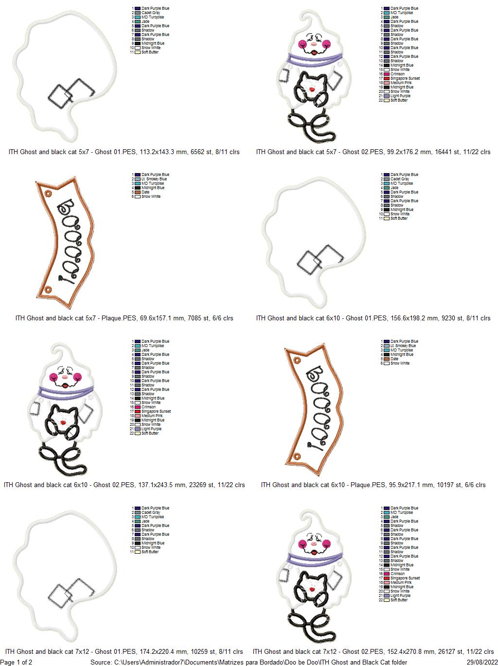 Ghost and Black Cat Ornament - ITH Project - Machine Embroidery Design