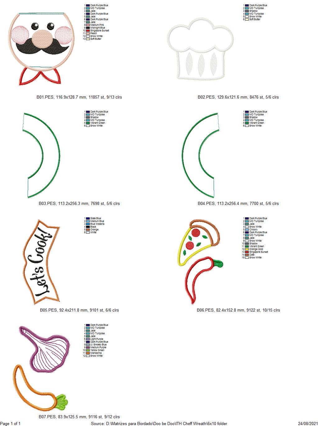 Let's Cook Chef Kitchen Wreath - ITH Project - Machine Embroidery Design