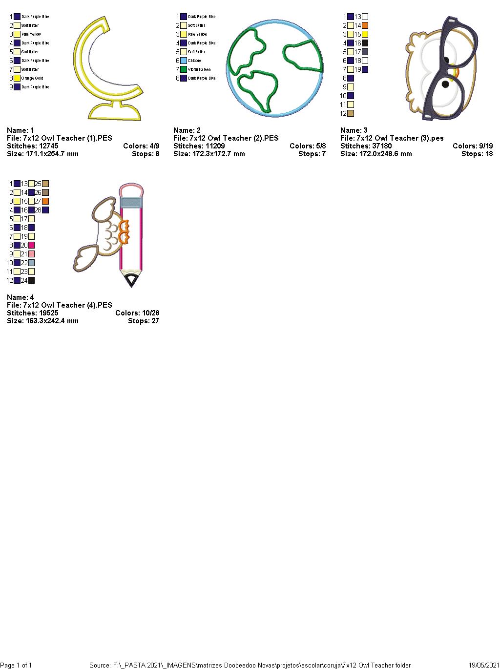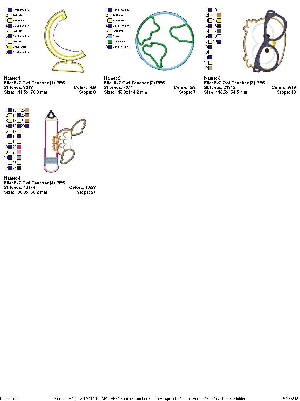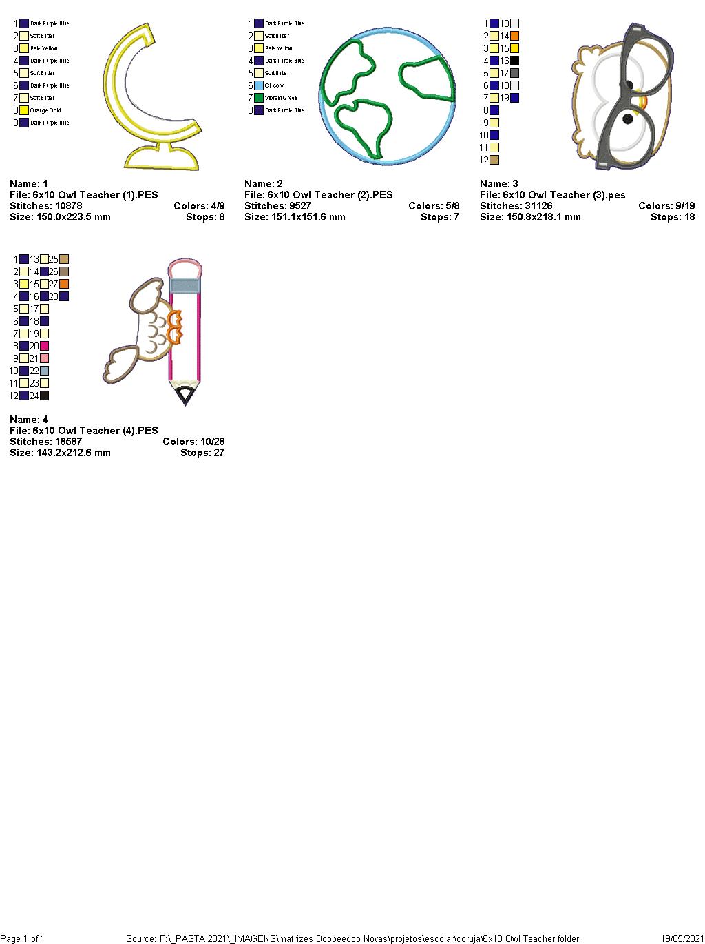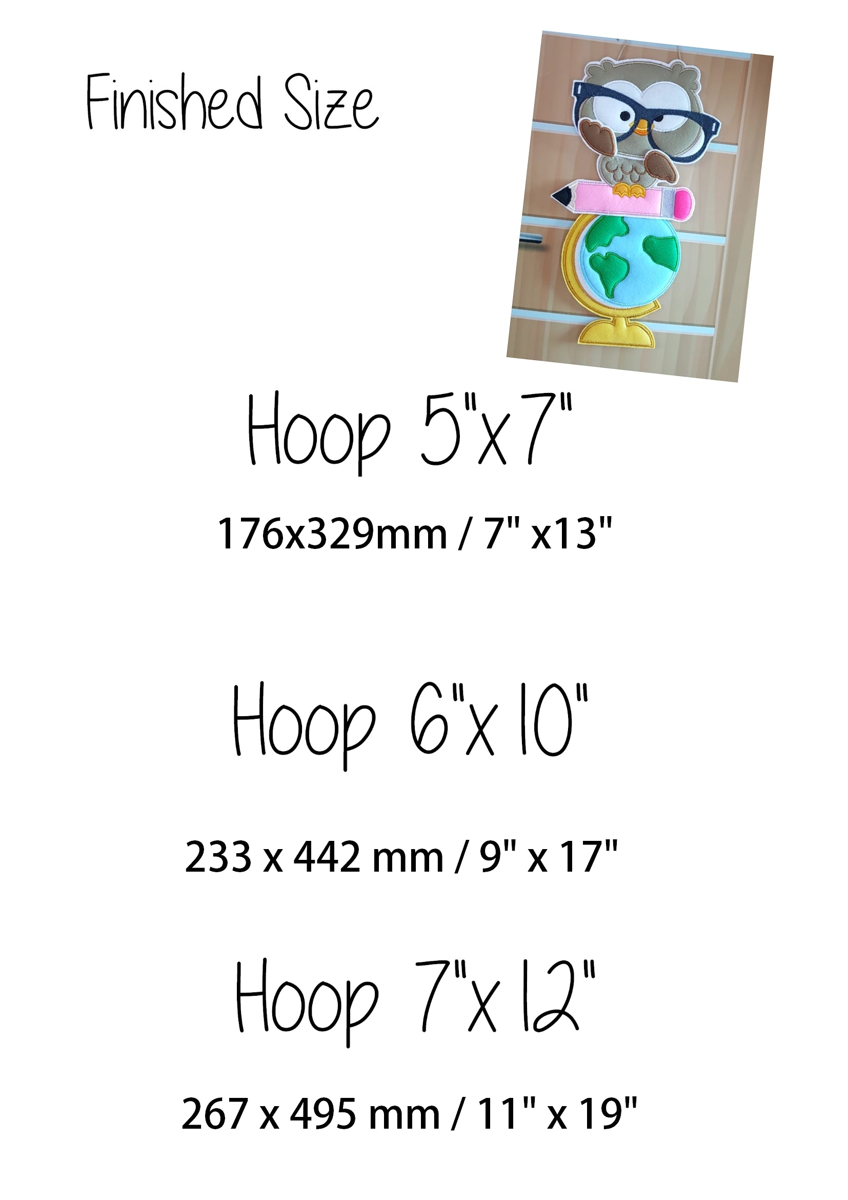 Owl Teacher School Ornament - ITH Project - Machine Embroidery Design