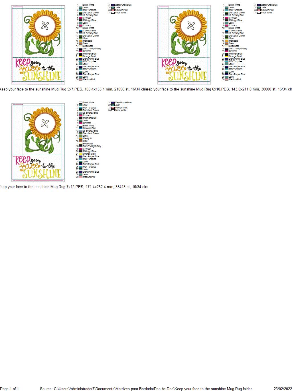 Keep Your Face to the Sunshine Mug Rug - ITH Project - Machine Embroidery Design