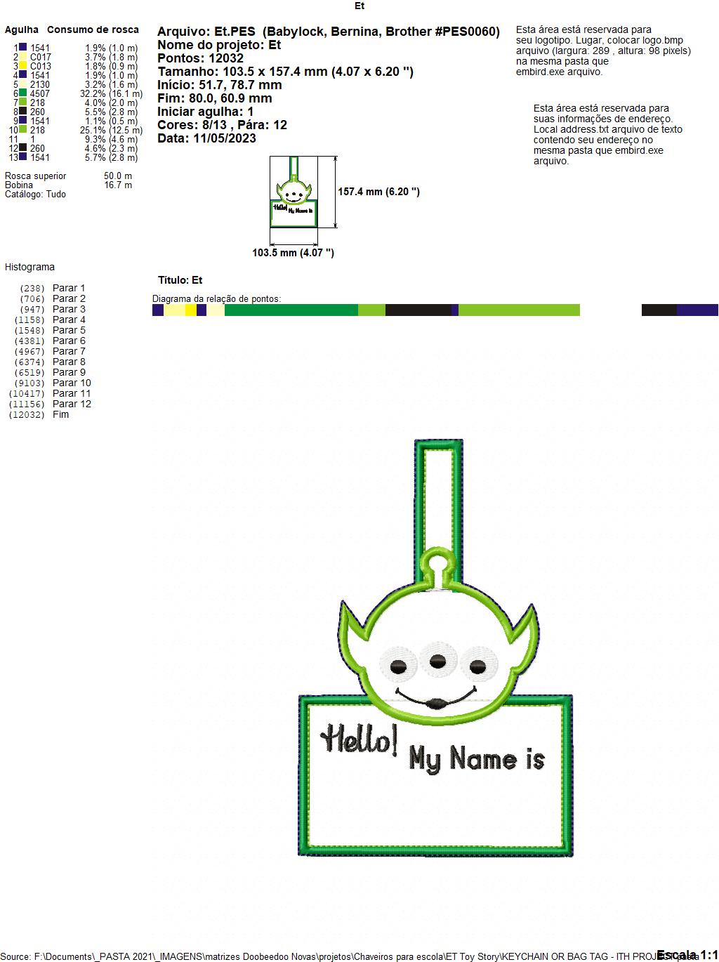 ET Keychain/Bag Tag - ITH Project - Machine Embroidery Design