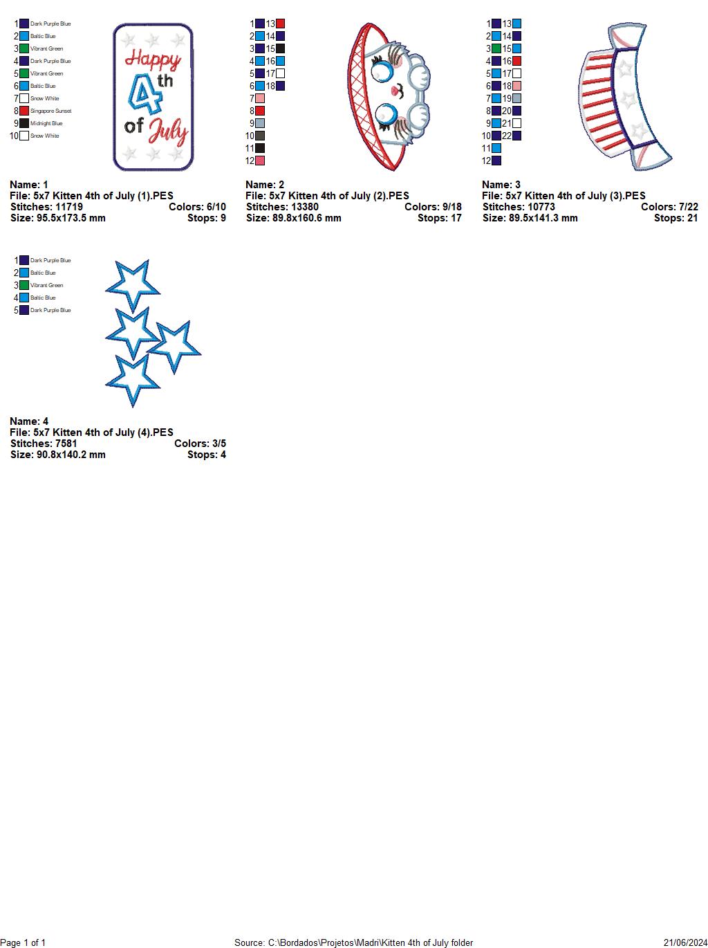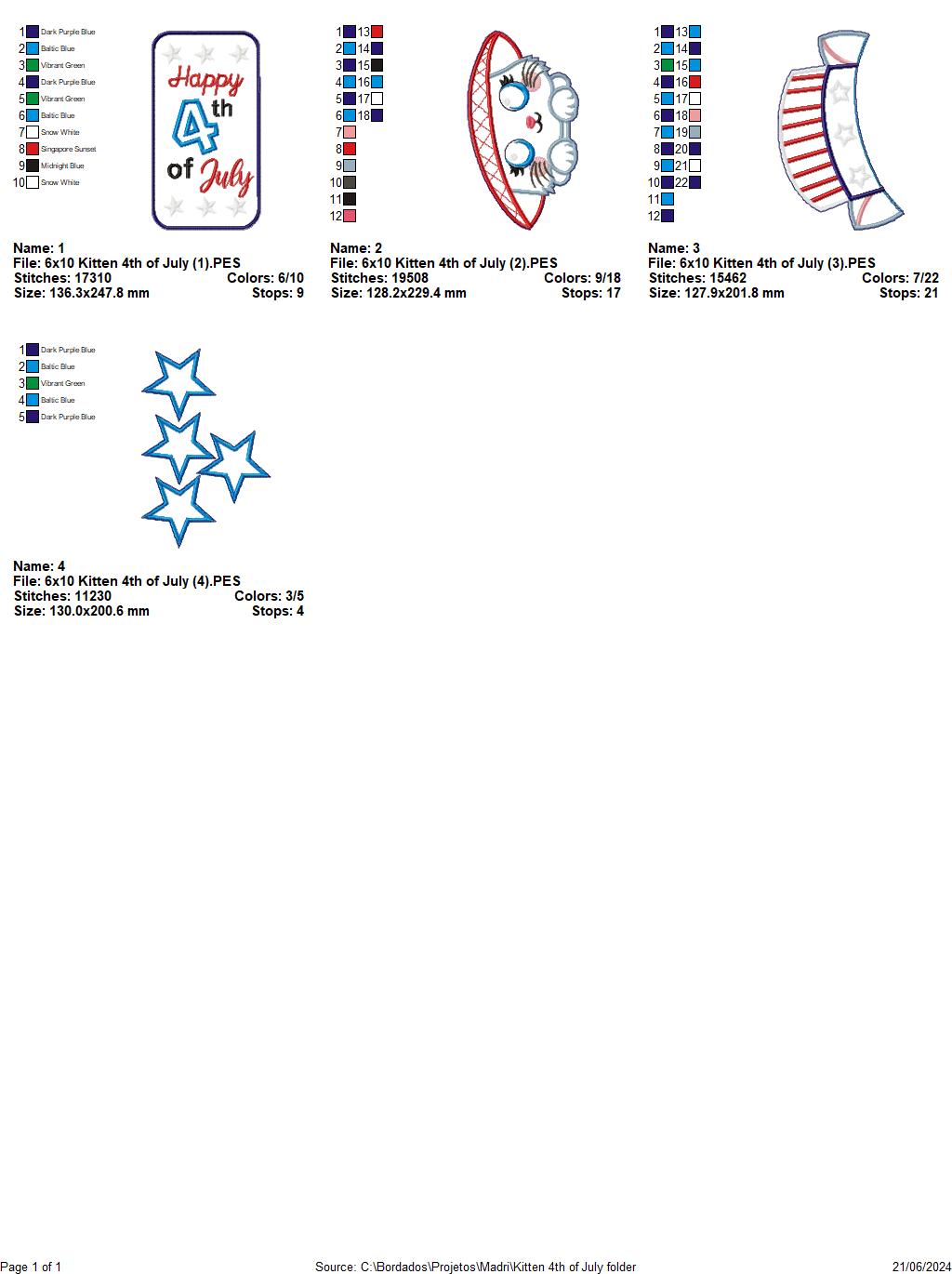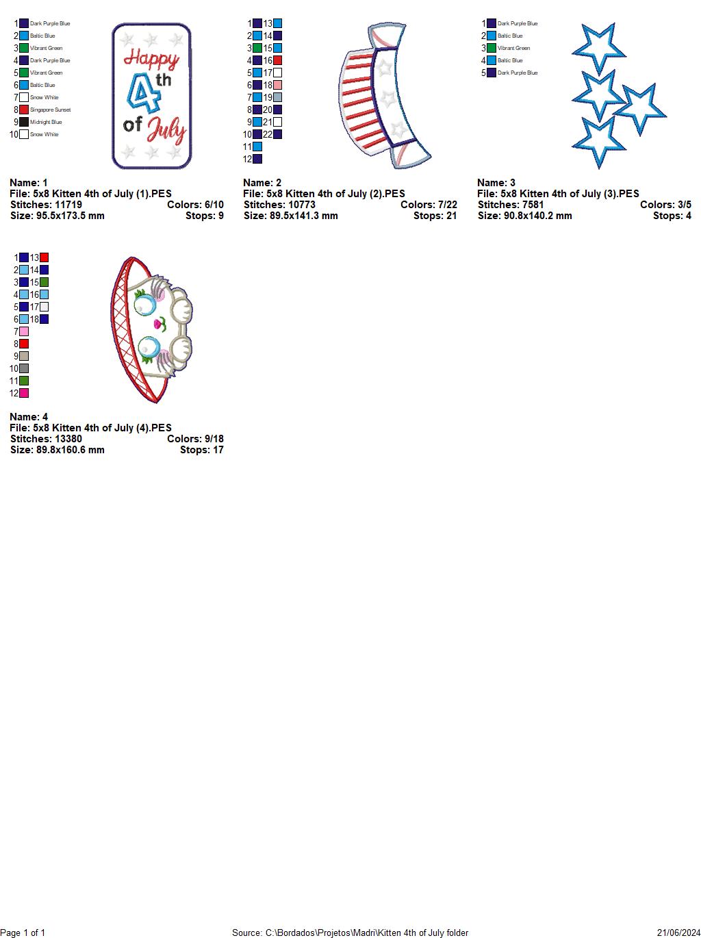 Kitten 4th of July - ITH Project - Machine Embroidery Design