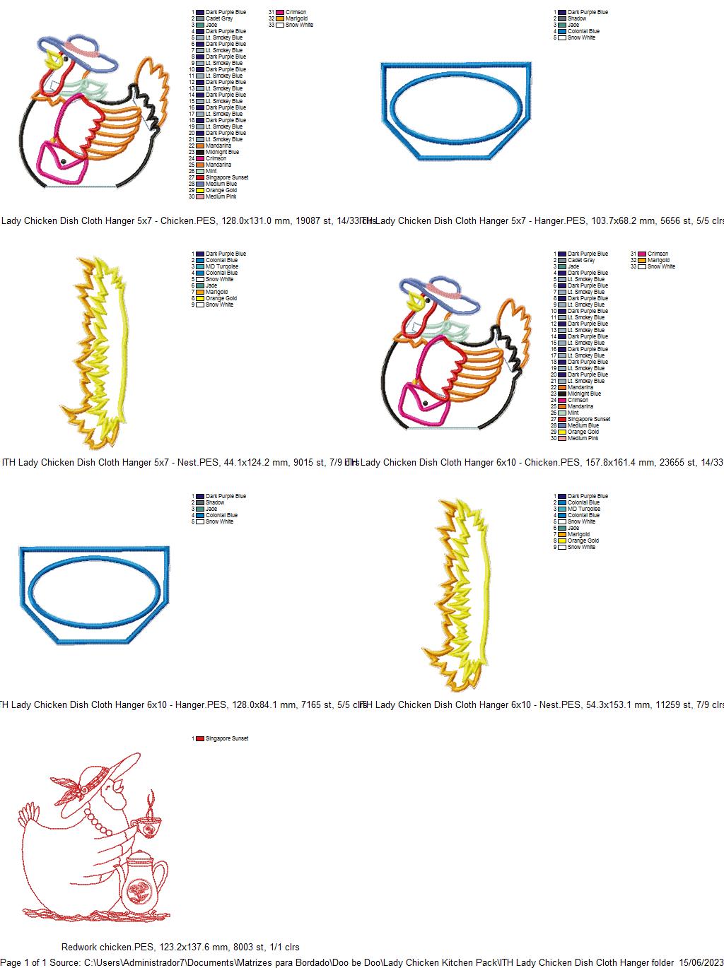 Lady Chicken Kitchen Ornaments Set - ITH Project - Machine Embroidery Design