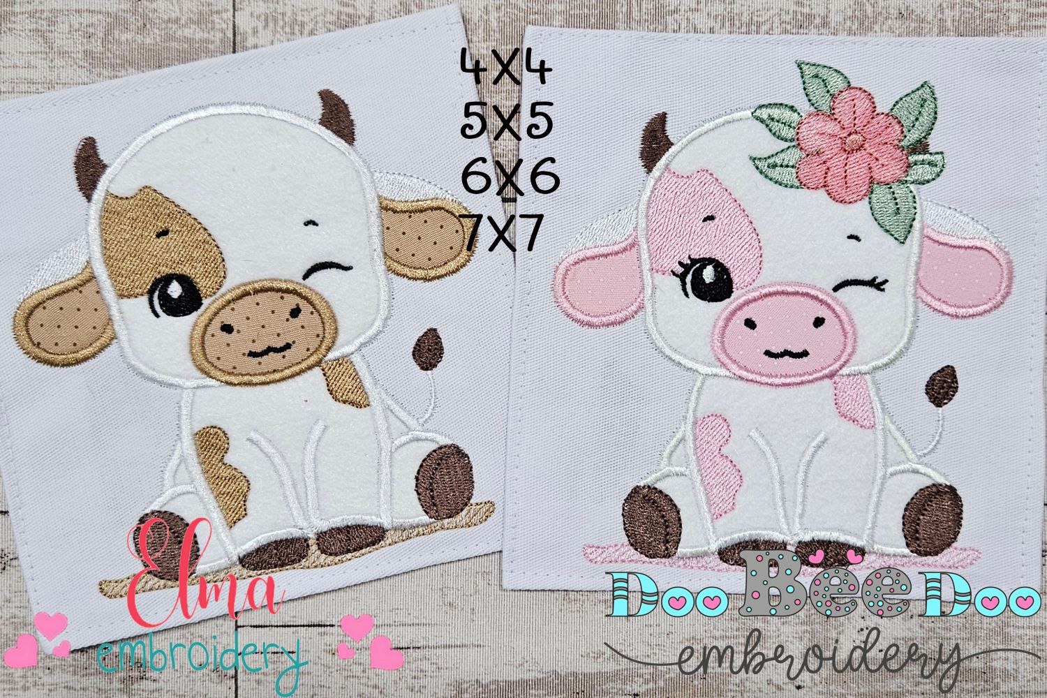 Little Cow Boy and Girl Blinking - Applique - Set of 2 Designs - Machine Embroidery Design