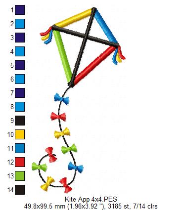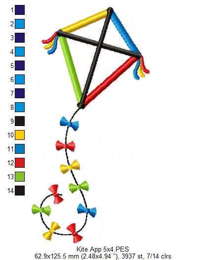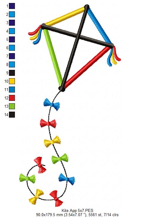 Little Kite with Whimsical Bows – Appliqué – Machine Embroidery Design