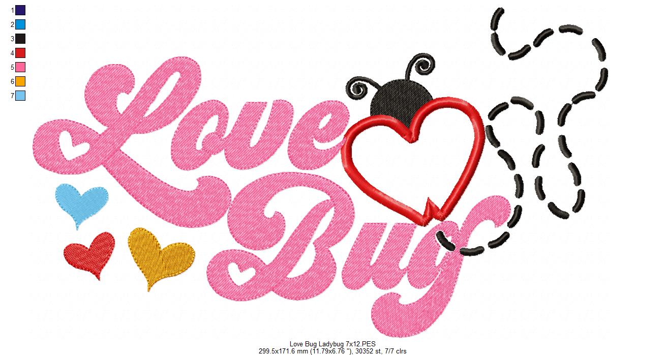 Love Bug Ladybug - Applique - Machine Embroidery Design