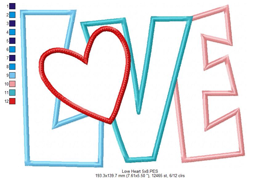 Love Heart Word - Applique - Machine Embroidery Design