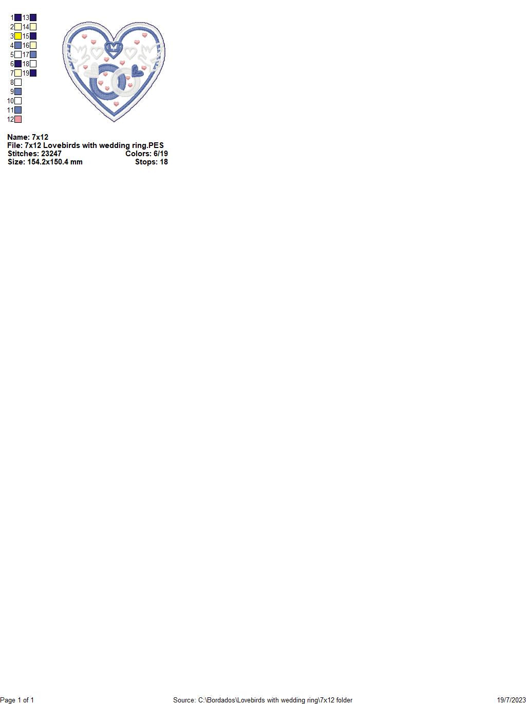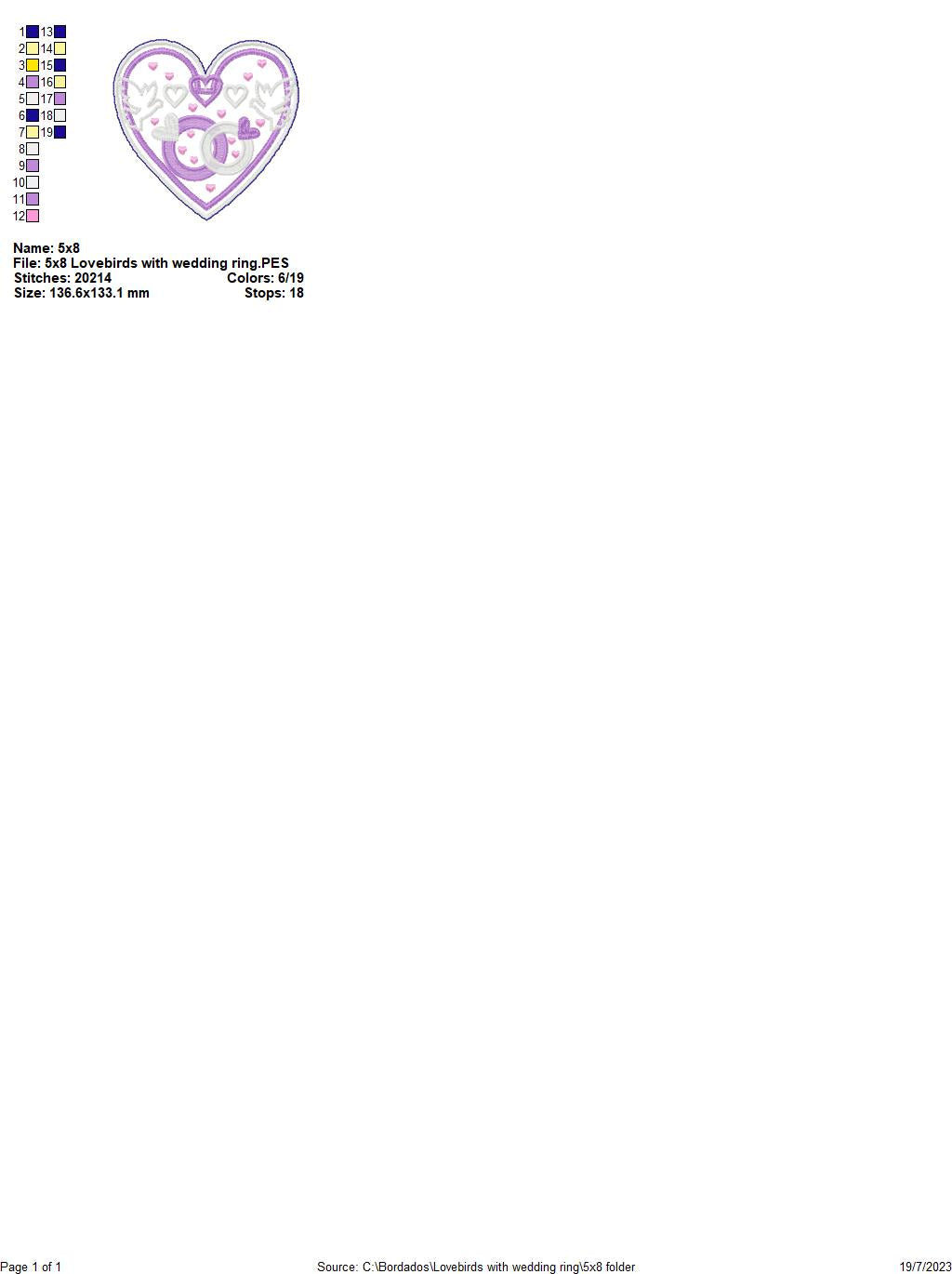 Lovebirds with Wedding Ring - ITH Project - Machine Embroidery Design
