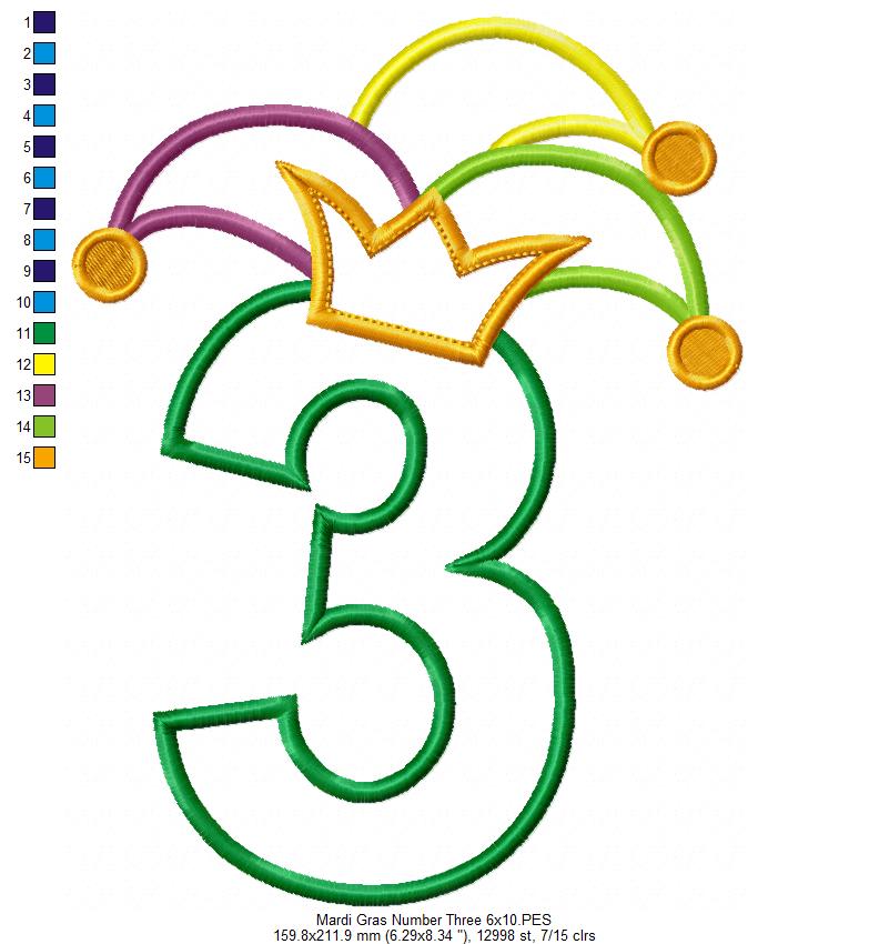 Mardi Gras Birthday Number 3 Three 3rd Birthday - Applique