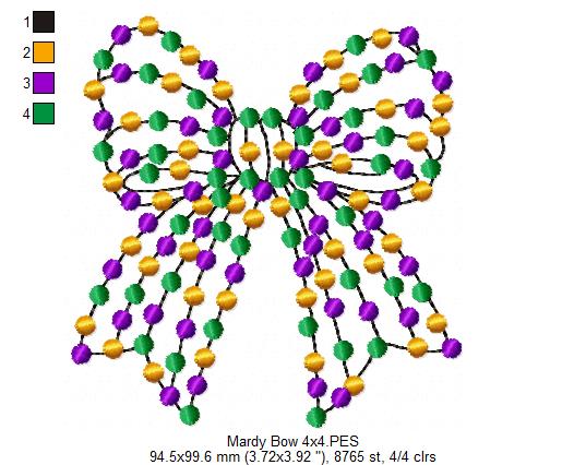 Mardi Gras Coquette Bow - Fill Stitch - Machine Embroidery Design
