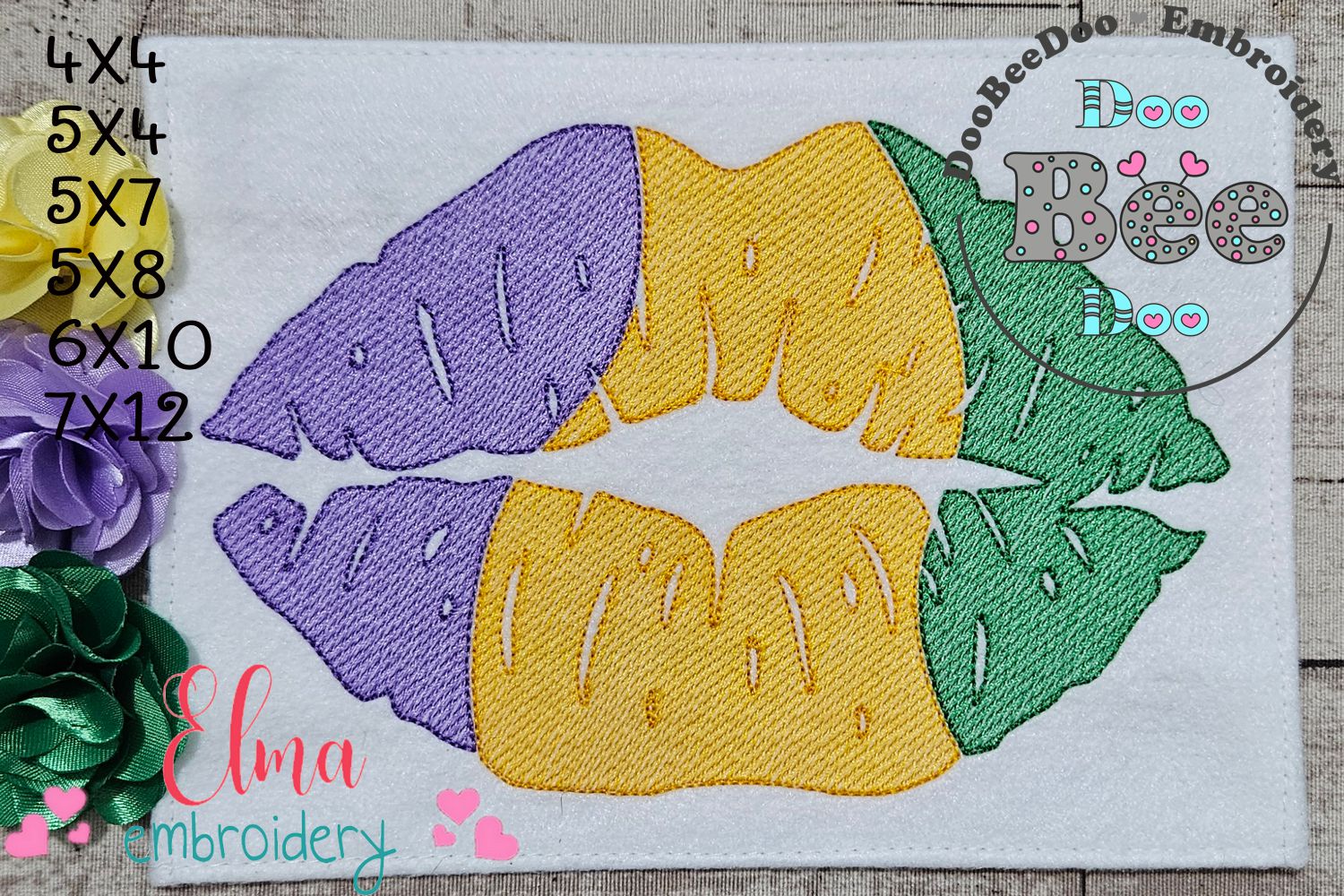 Mardi Gras Kiss - Rippled Stitch - Machine Embroidery Design