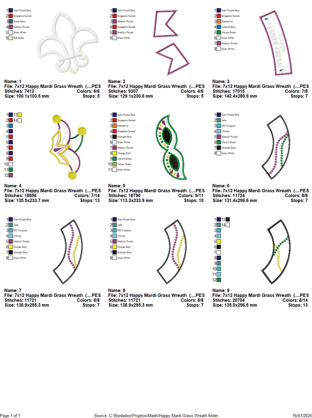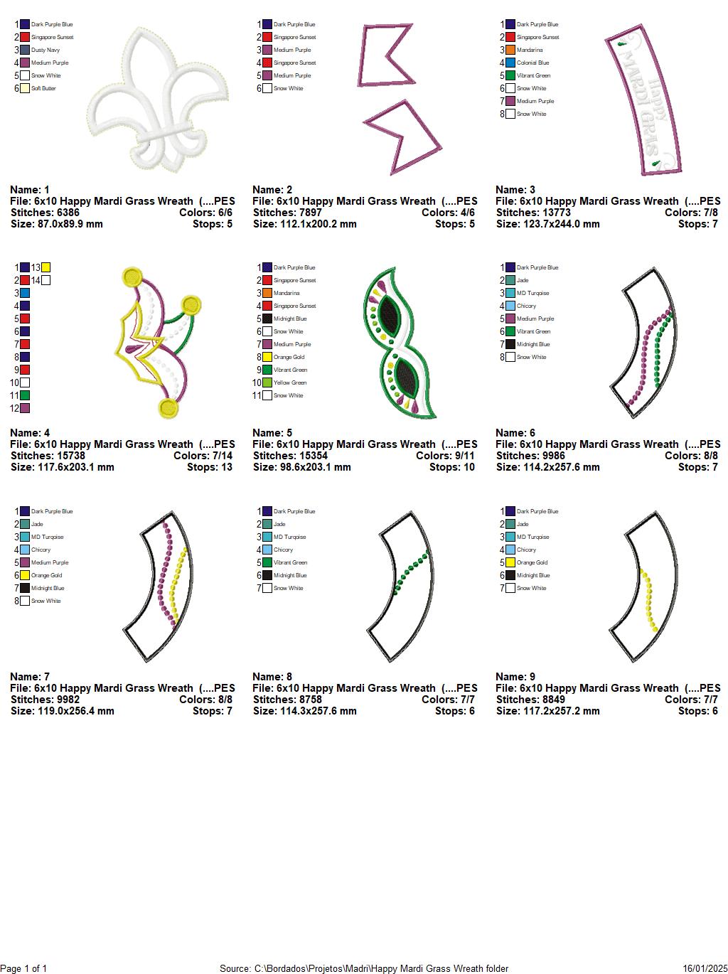 Mardi Gras Wreath - ITH Project - Machine Embroidery Design