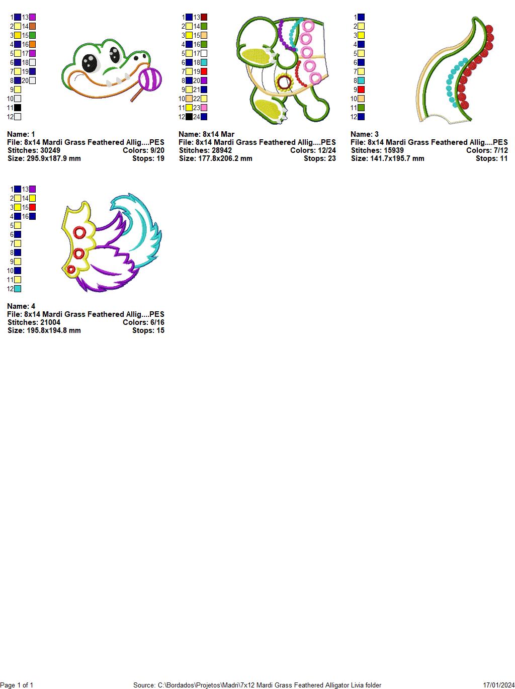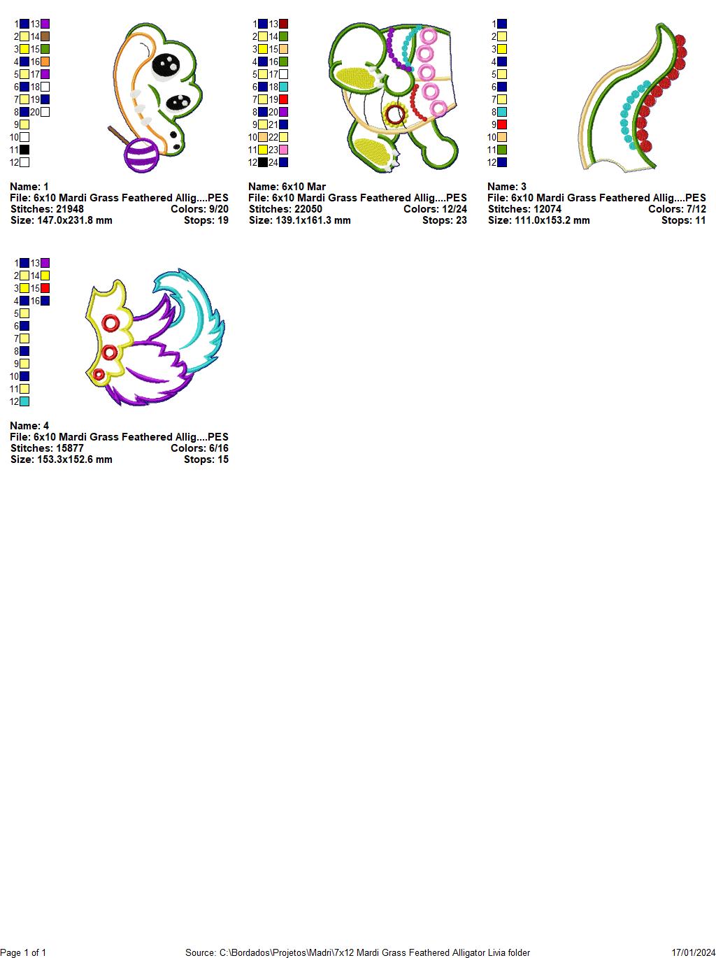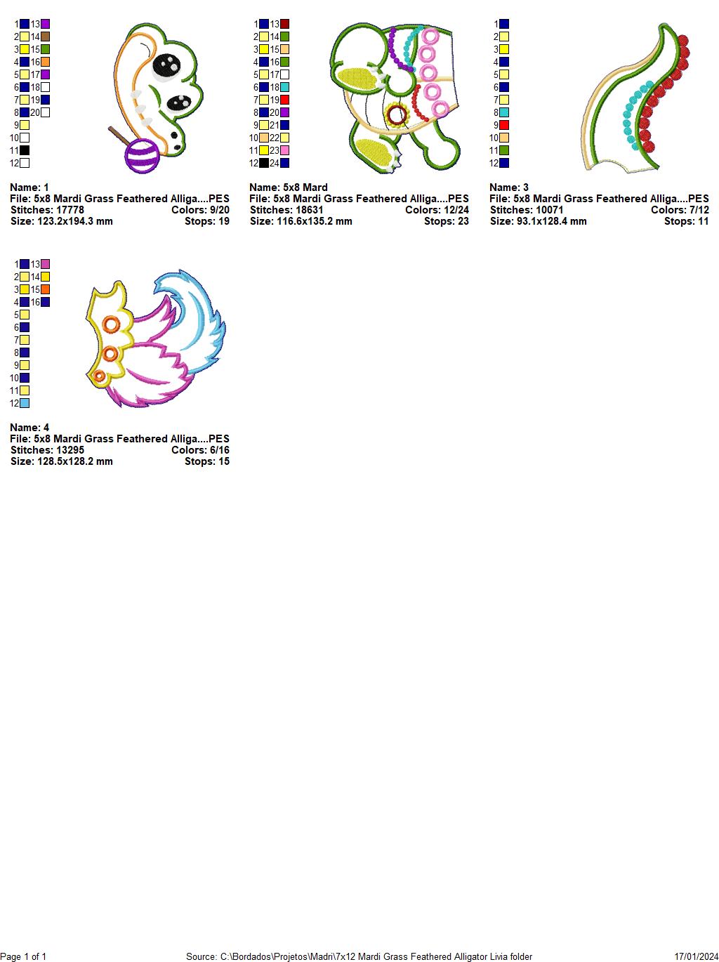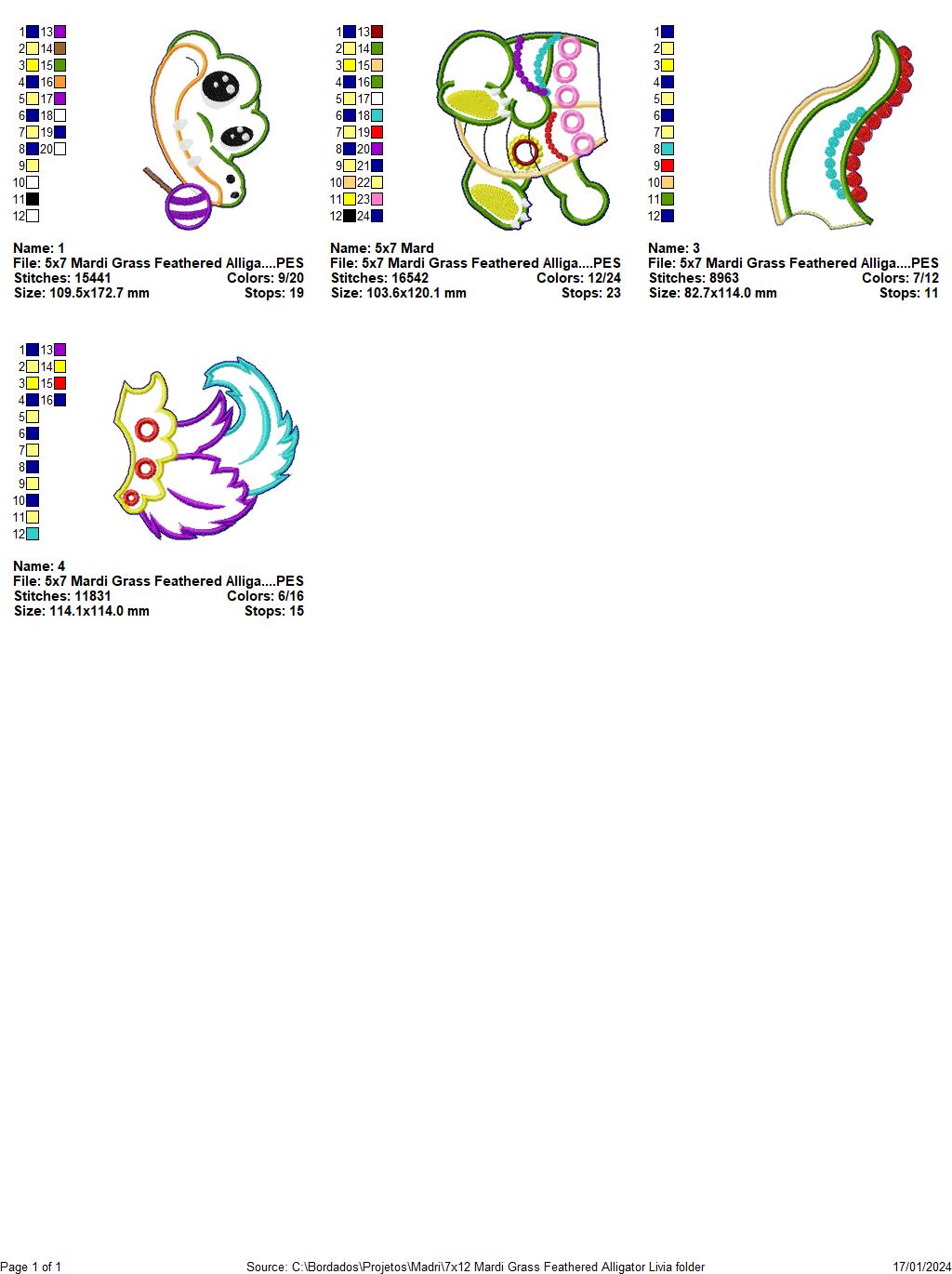 Mardi Grass Feathered Alligator - ITH Project - Machine Embroidery Design