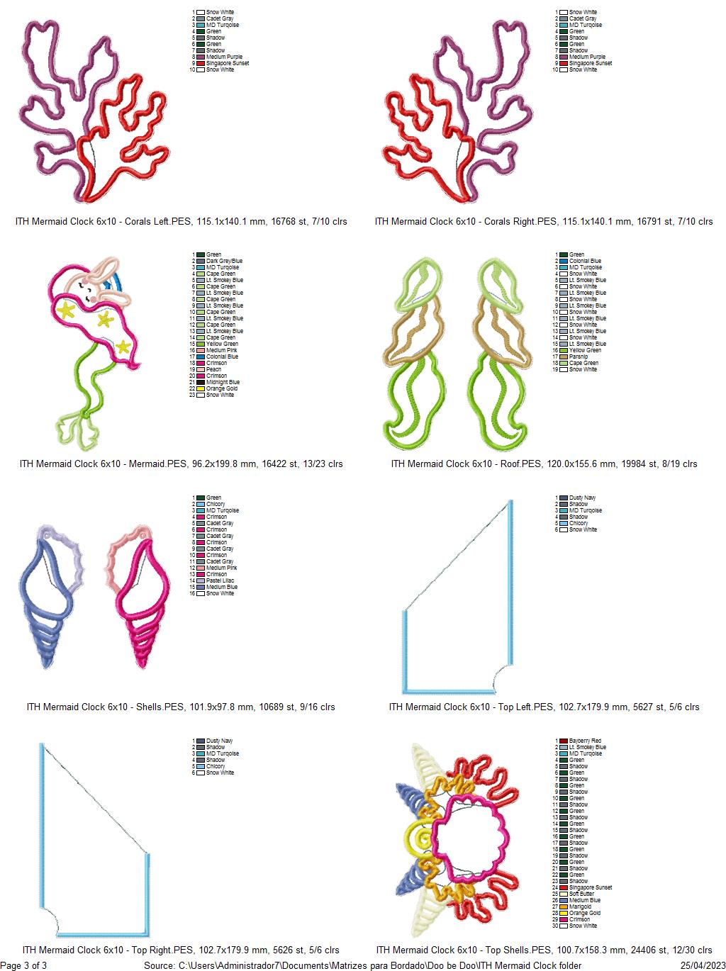 Mermaid Clock Ornament - ITH Project - Machine Embroidery Design