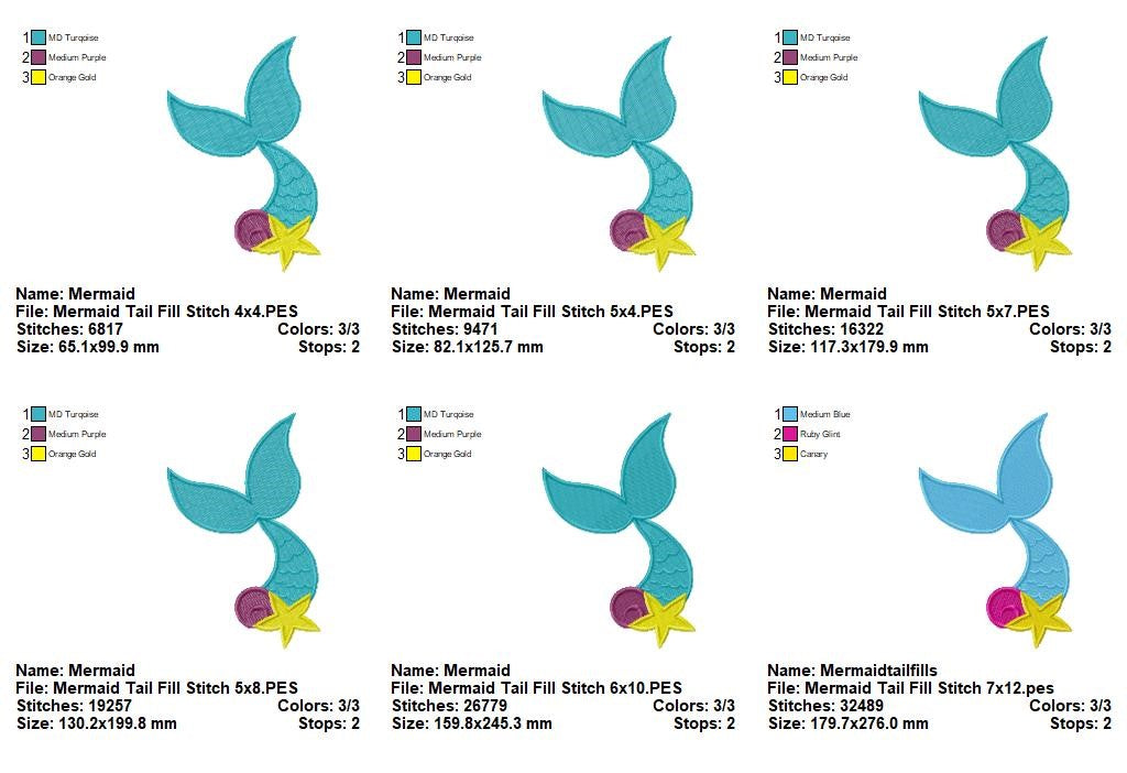 Lovely Mermaid Tail Embroidery – Fill Stitch – Machine Embroidery Design
