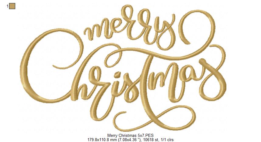 Merry Christmas - Fill Stitch - Machine Embroidery Design