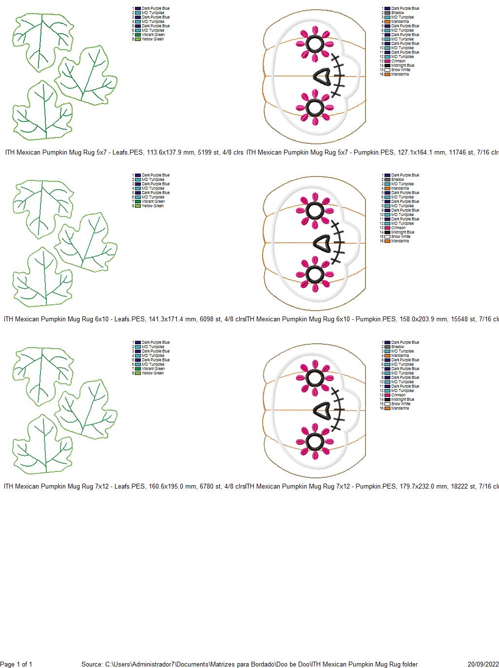 Upgrade your crafting game with our Mexican Pumpkin Mug Rug! This In-The-Hoop embroidery project is perfect for machine embroidery enthusiasts. With an instant download, you can start creating your own unique and festive pumpkin designs in no time. Add a touch of Mexico to your home decor with this must-have design!