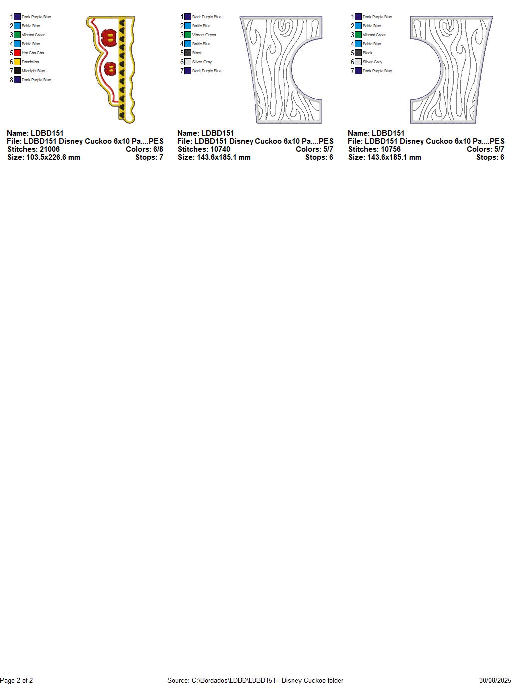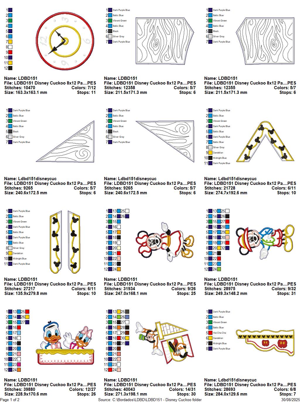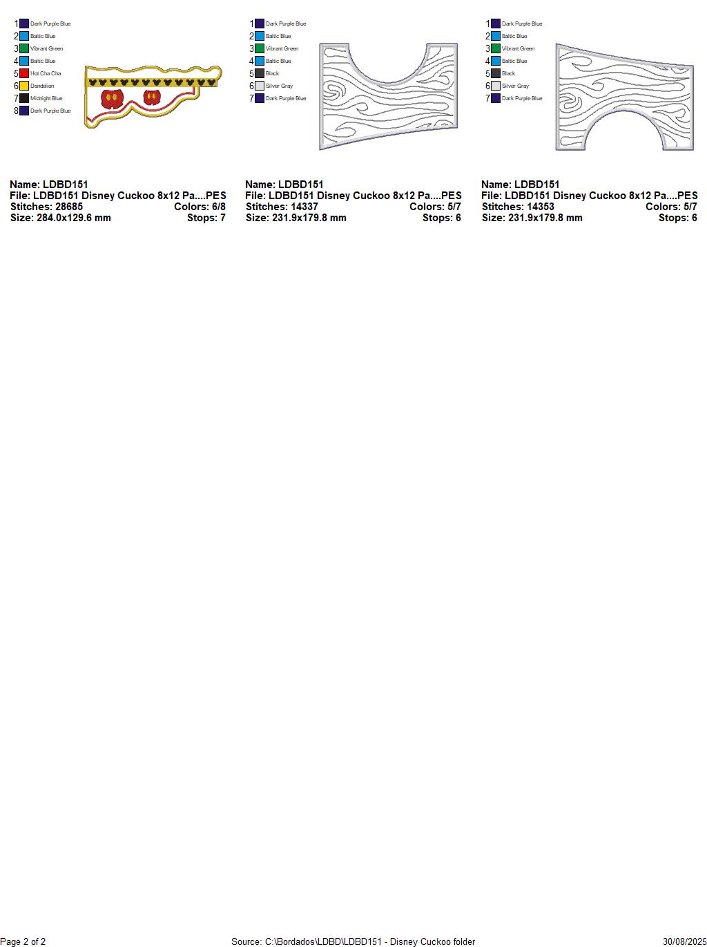 Bring the magic of Mickey and Friends into your home with this charming In The Hoop (ITH) Cuckoo Clock embroidery project! This fun and colorful design features Mickey, Minnie, Donald, Daisy, Goofy, and Pluto in an adorable cuckoo clock scene that will brighten up any space.