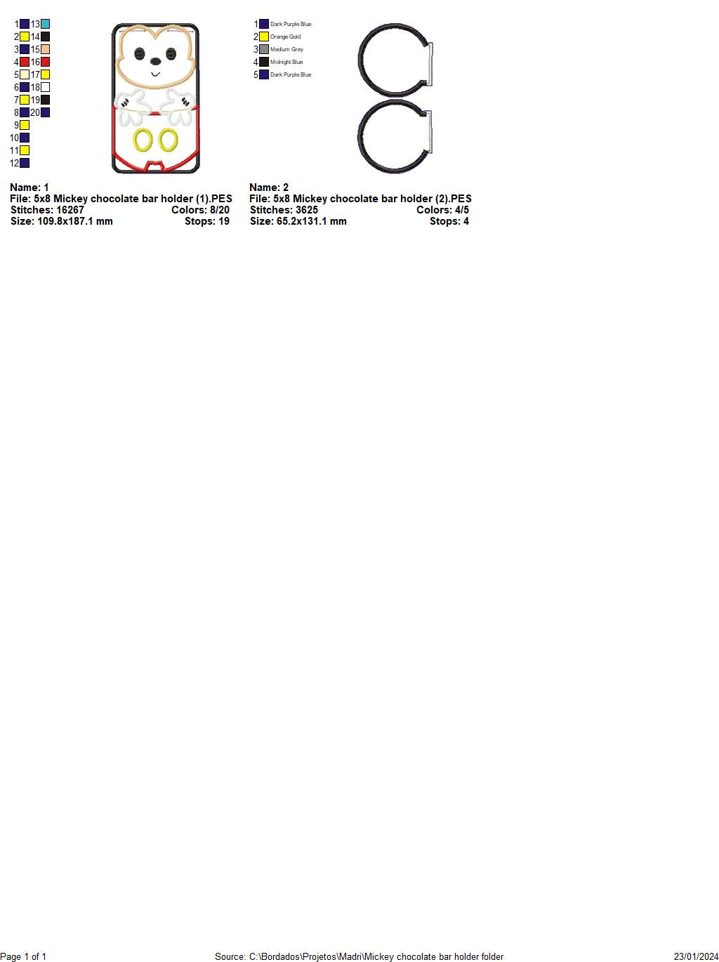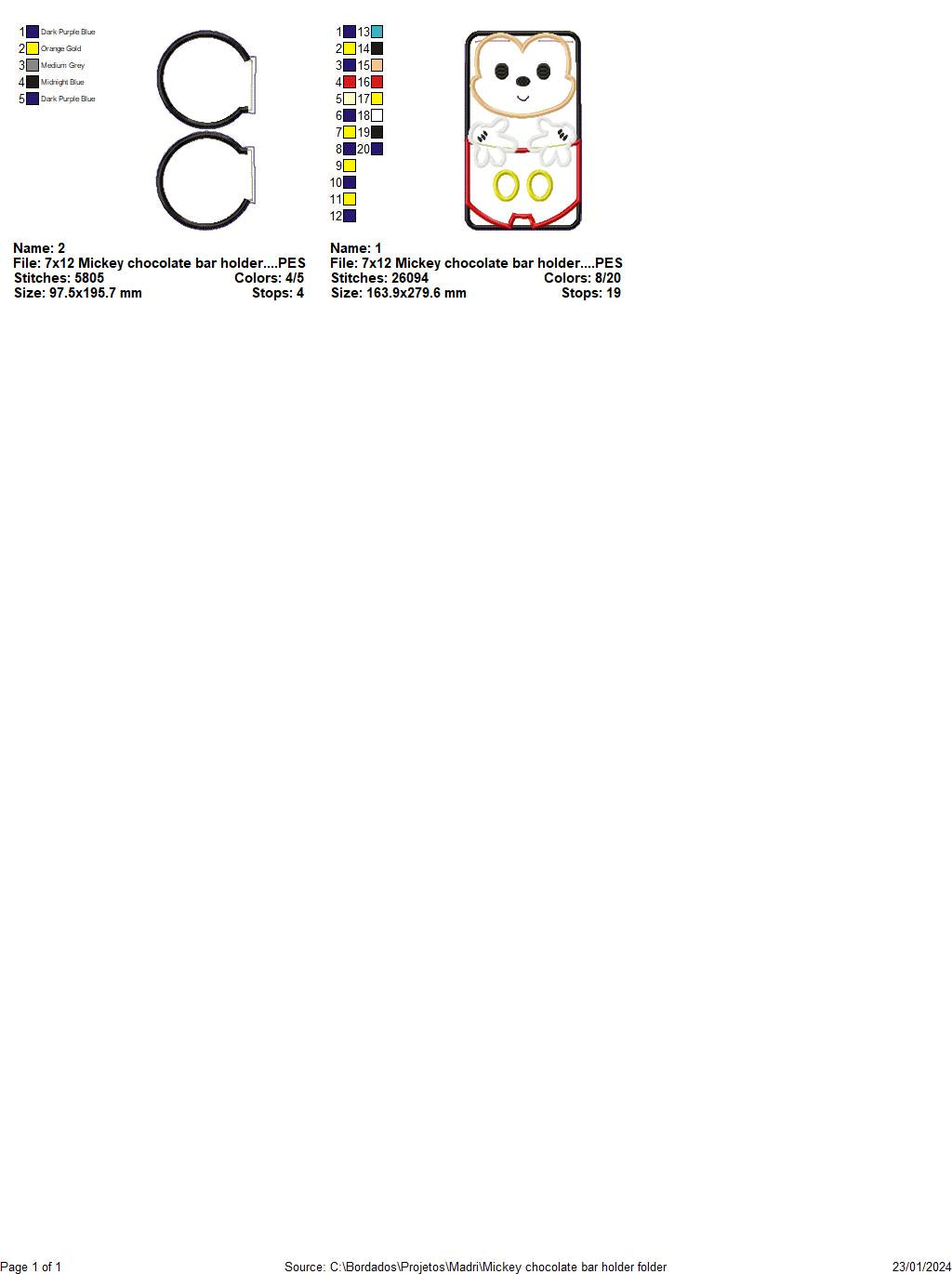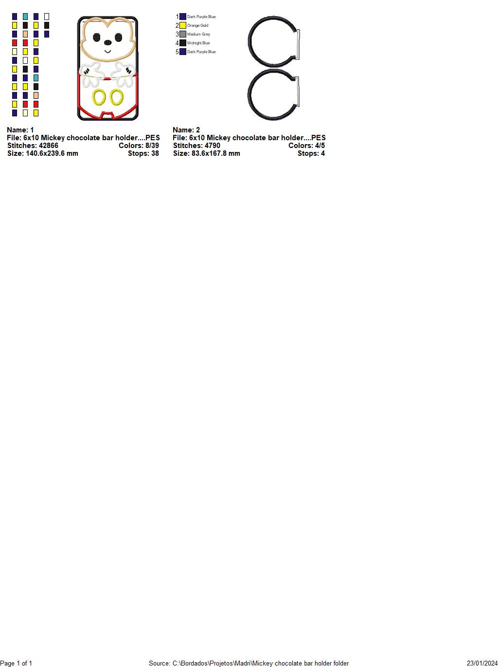 Mickey Chocolate Bar Holder - ITH Project - Machine Embroidery Design