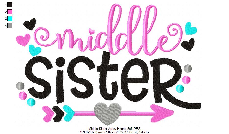 Celebrate the sweet balance of love and personality with this adorable Middle Sister embroidery design 💖✨