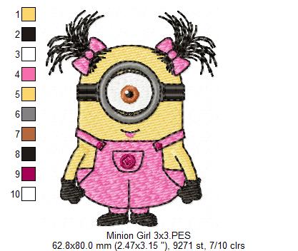Minions Girl - Fill Stitch Embroidery - Machine Embroidery Design
