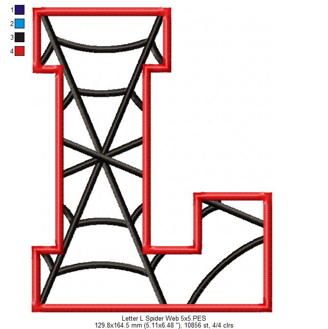 Monogram L Spider Web Letter L - Applique - Machine Embroidery Design