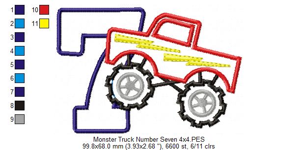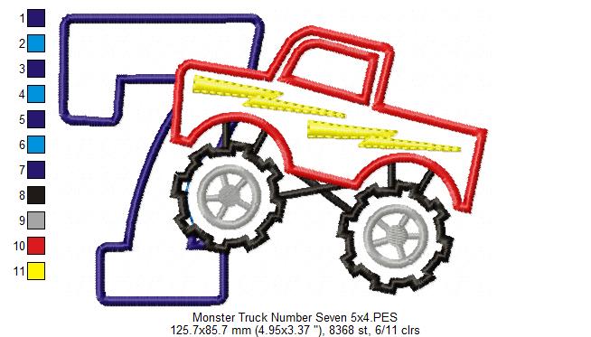 Monster Truck Number 7 Seven 7th Seventh Birthday Number 7 - Applique