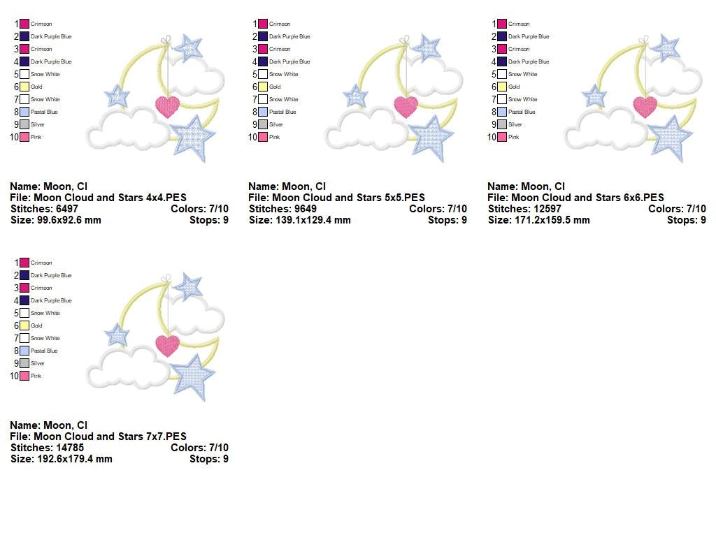 Sweet Dreams Moon and Stars – Applique – Machine Embroidery Design